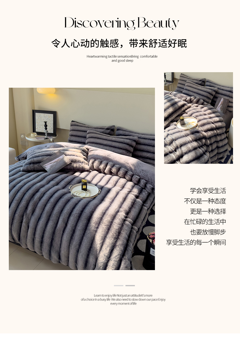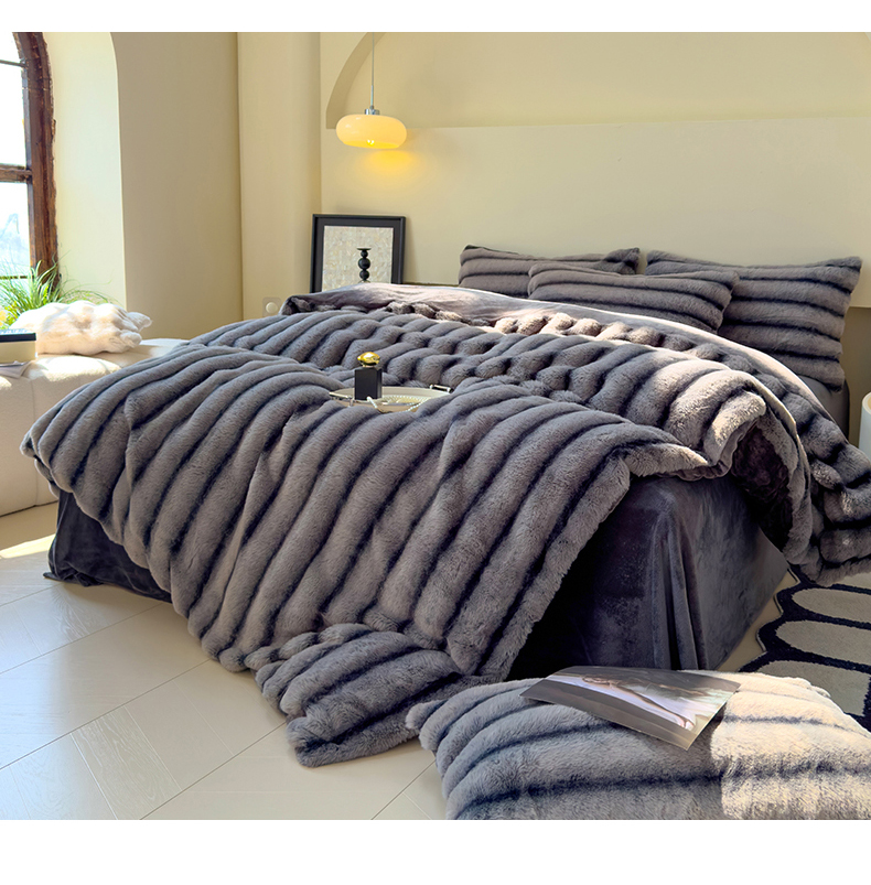 欣宜家纺 2025新款兔兔绒牛奶绒加厚兔毛保暖四件套 深灰