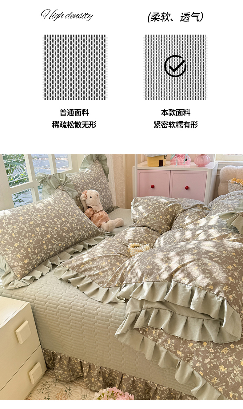 当前位置: 91家纺网 > 商品网购 > 床品套件 > 四件套 > 化纤普通四件套 > 韩约家纺 2026新款韩式花边古法棉感床盖四件套 花影