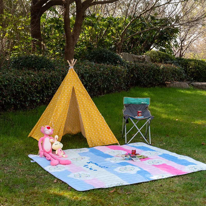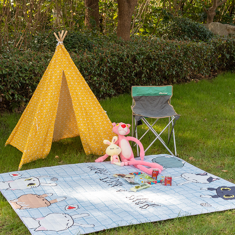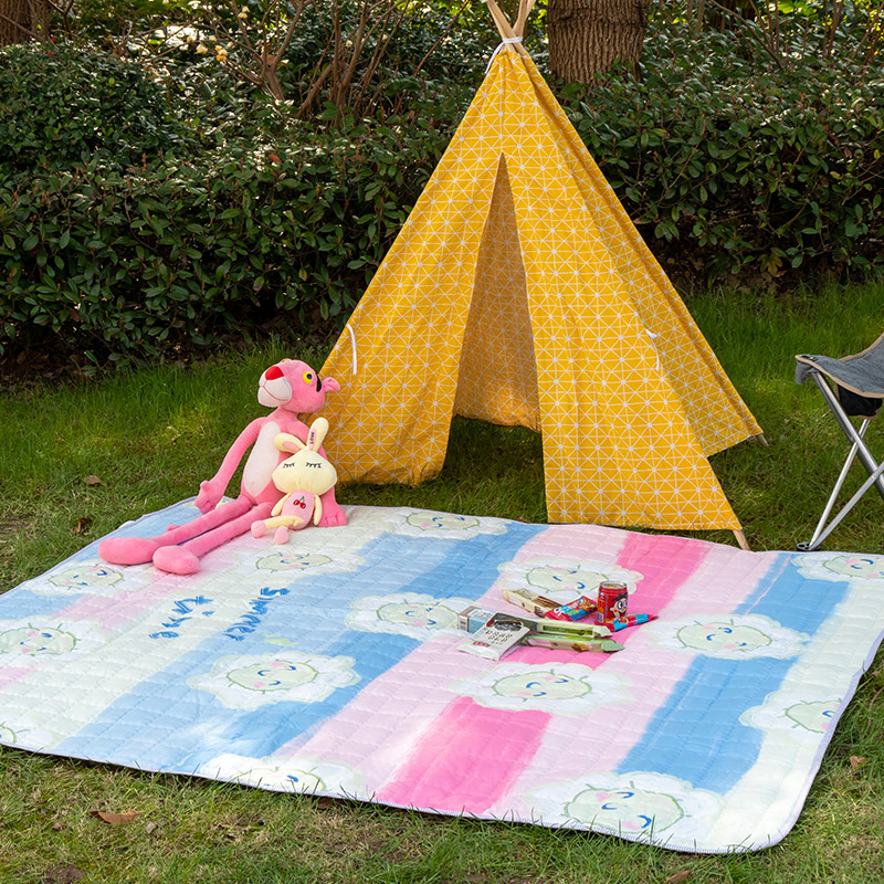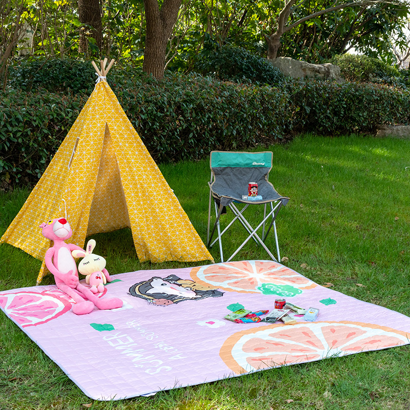 欣宜家纺 2025新款INS风绗缝加厚防水野餐草坪垫 粉格草莓