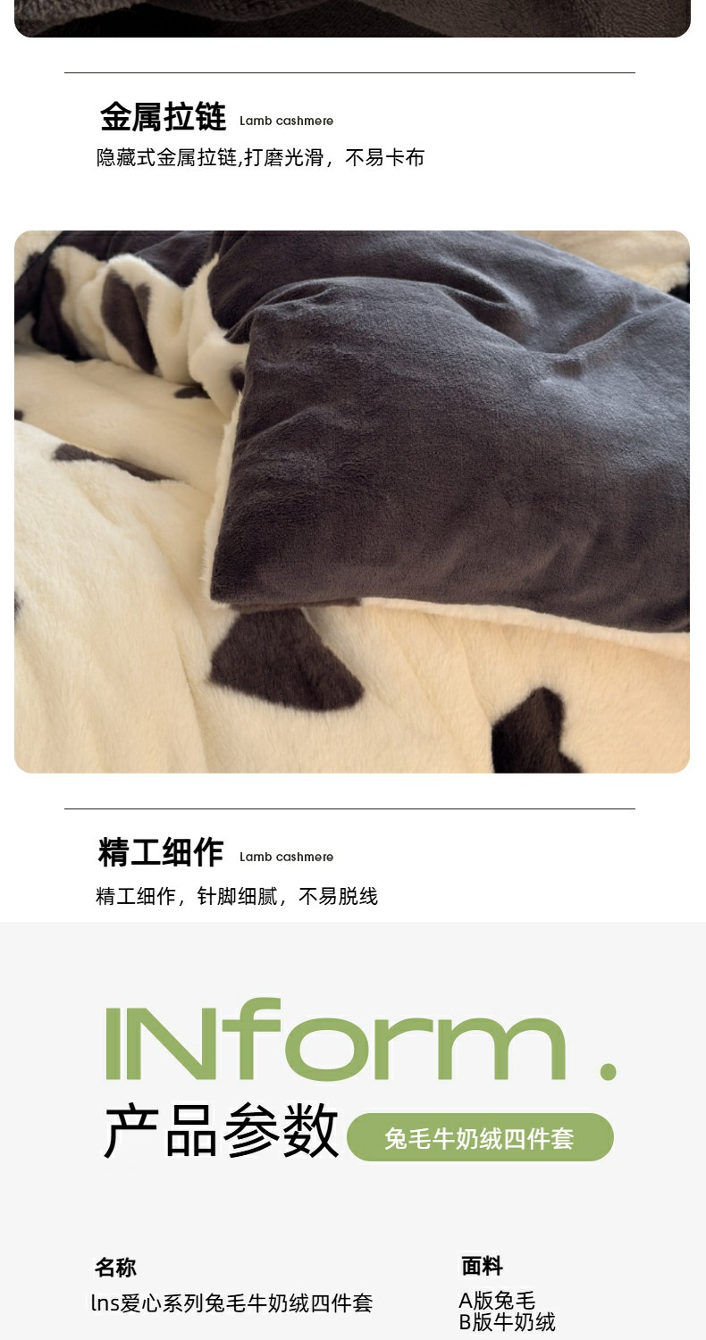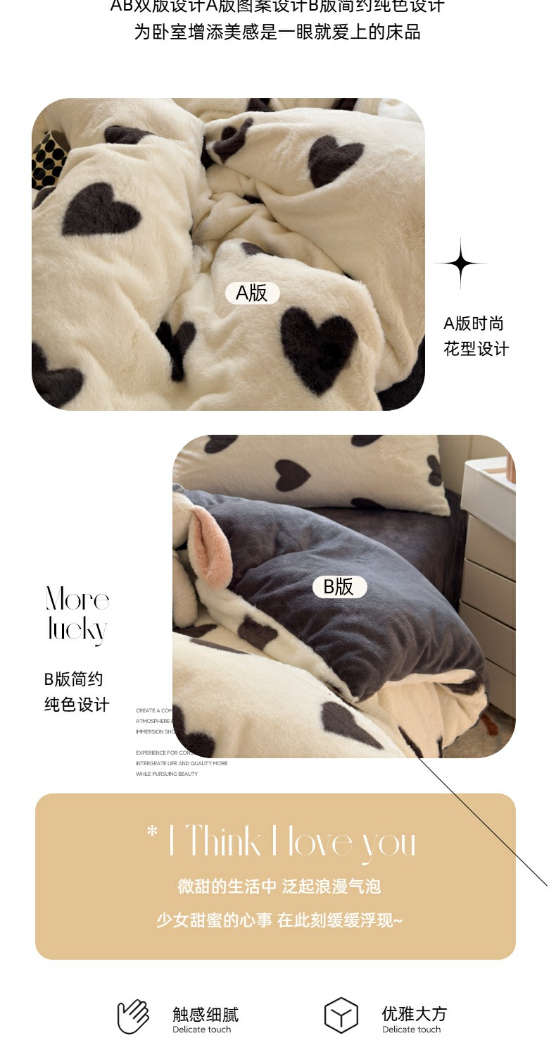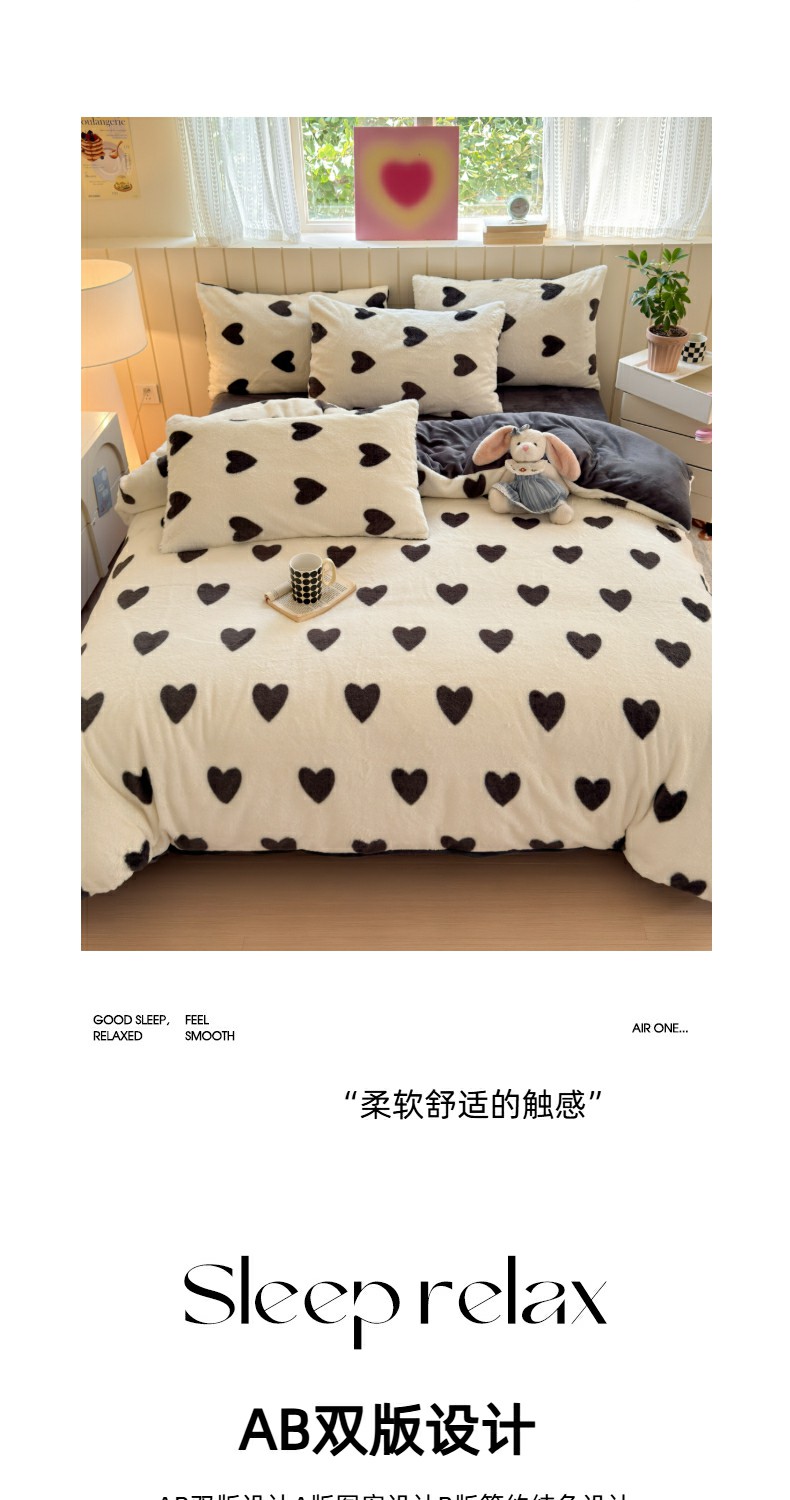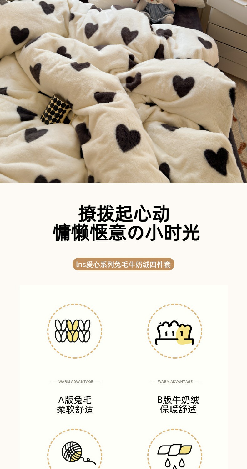 欣宜家纺 2025新款秋冬ins奶油风超暖爱心系列仿兔毛牛奶绒四件套 爱心-红
