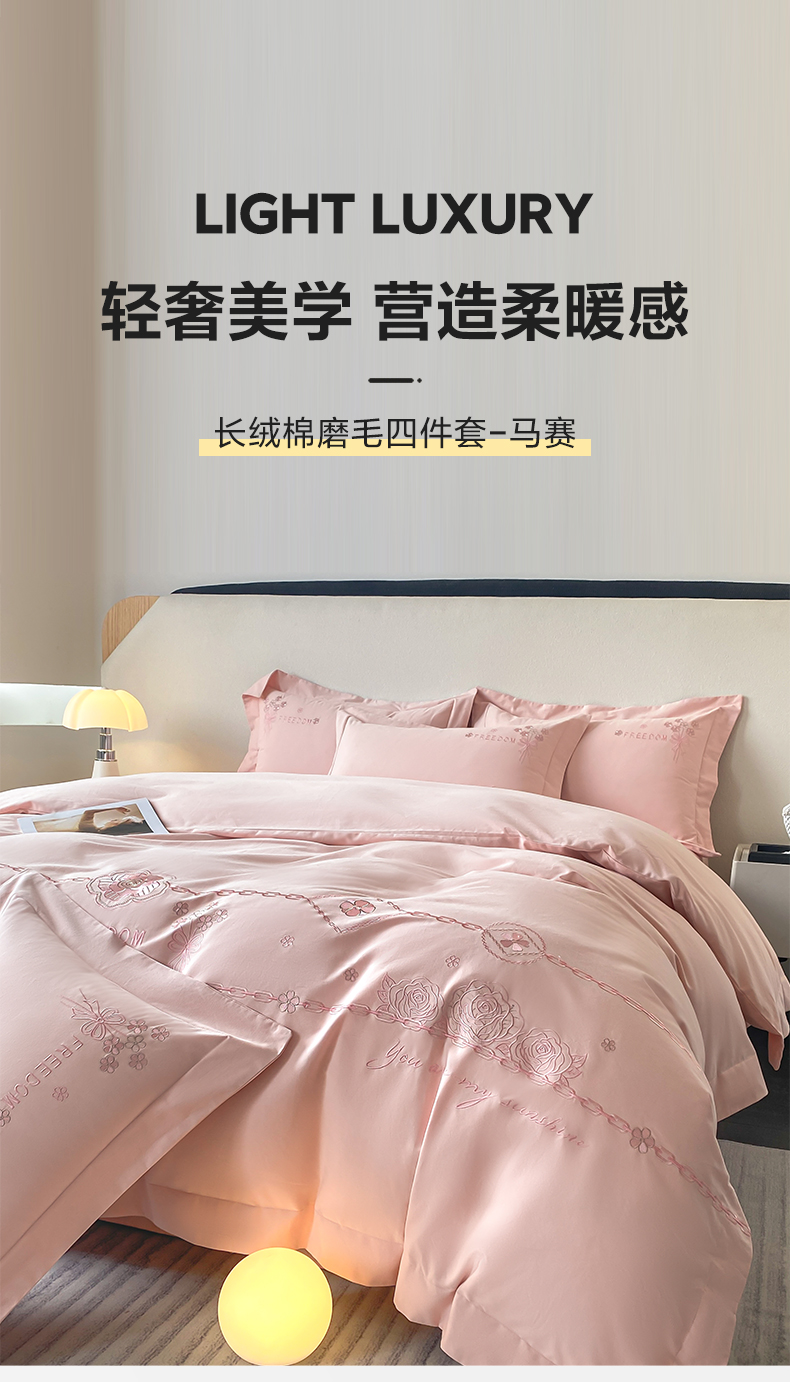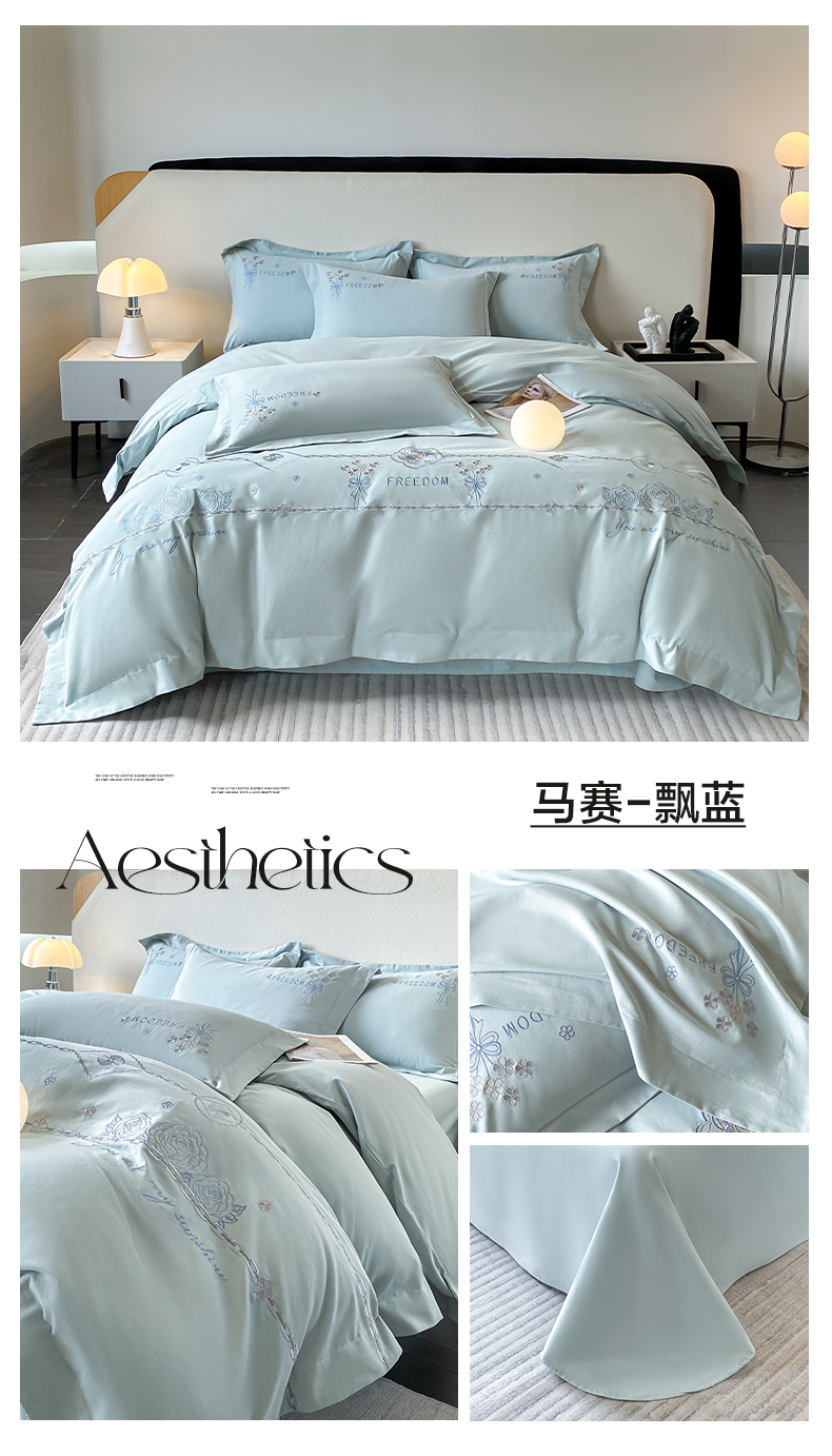 (总)欣宜家纺 2026春夏新款60支A类新疆长绒棉刺绣全棉四件套纯棉床品套件,玛丽-香芋紫,玛丽-梦幻蓝,玛丽-奶白,玛丽-轻奢粉,玛丽-石灰