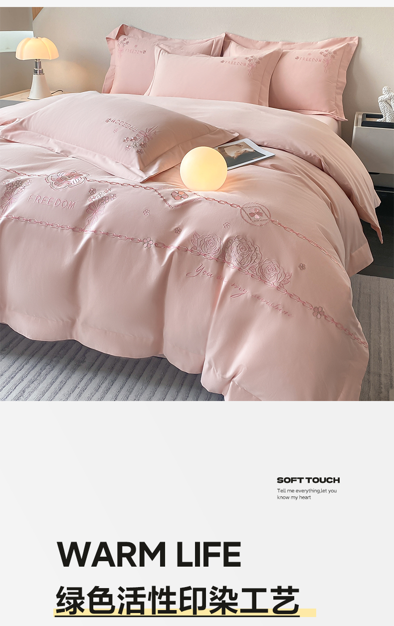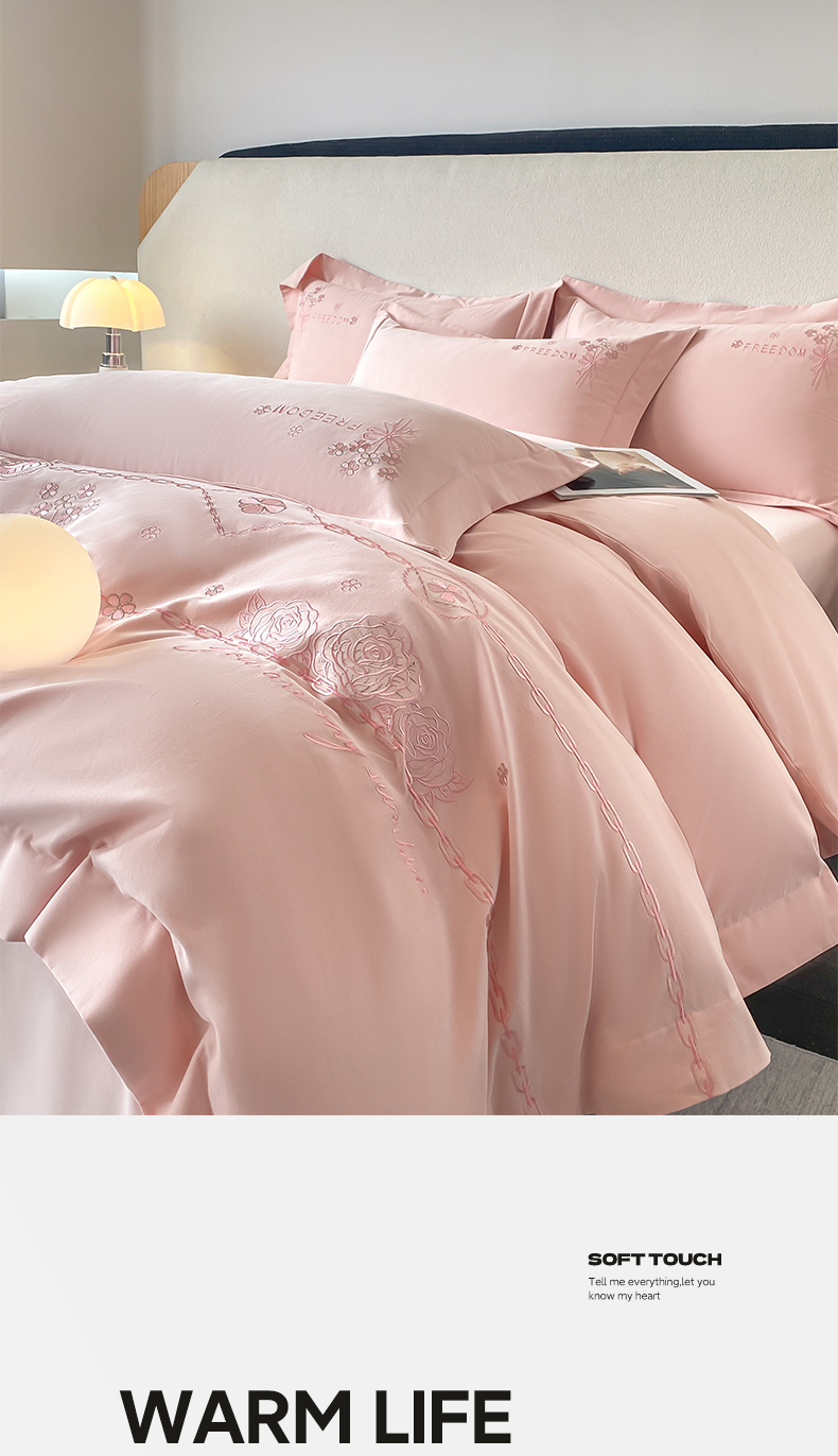 (总)欣宜家纺 2026春夏新款60支A类新疆长绒棉刺绣轻奢风四件套,樱花-白粉,樱花-清香绿,樱花-少女粉,樱花-天天蓝,樱花-香芋紫