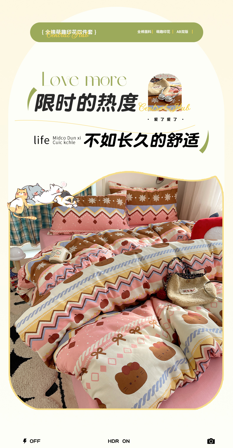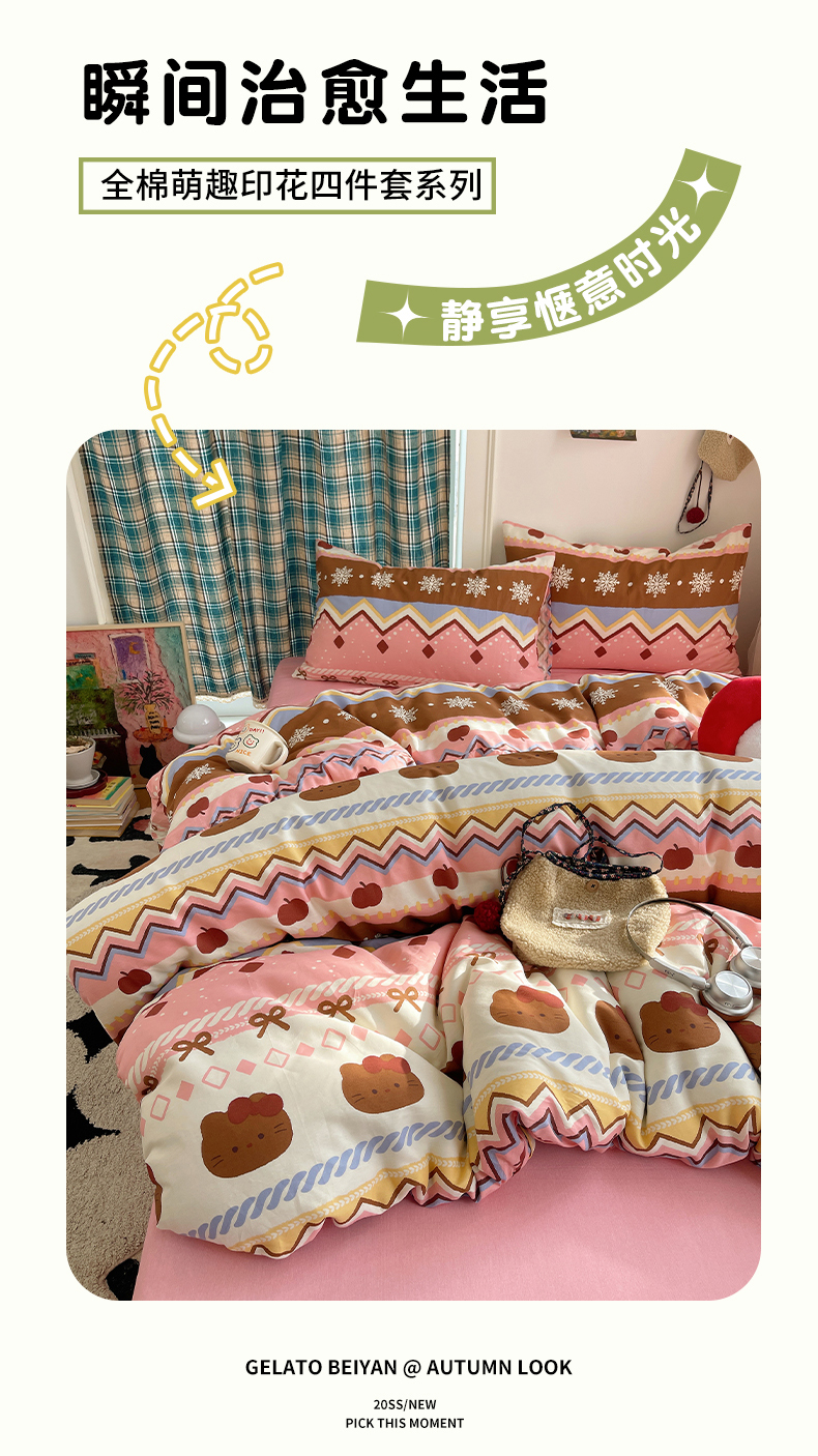 当前位置: 91家纺网 > 商品网购 > 床品套件 > 四件套 > 全棉普通四件套 > 瑞莱 2026新款ing小清新费尔岛全棉四件套 甜美喵喵
