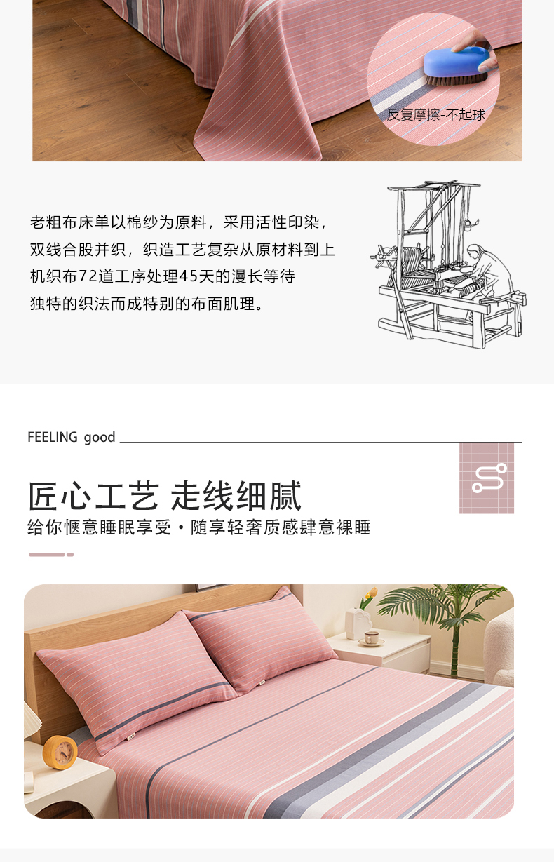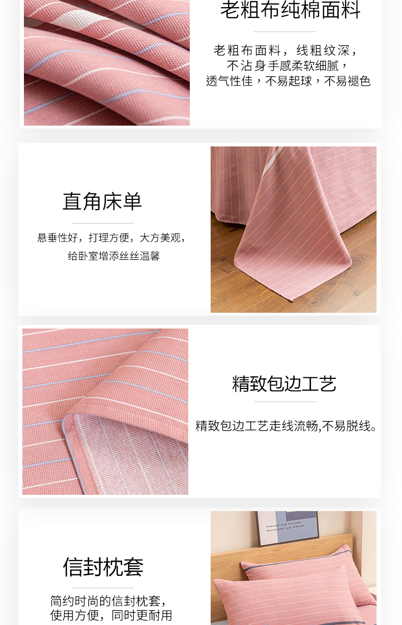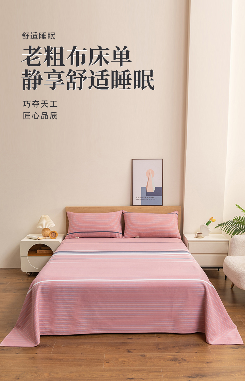 • 91家纺网 家纺一手货源 找家纺 居美良品 2026新款无印风正宗加厚老粗布床单单件枕套三件套可做凉席 简尚-粉
