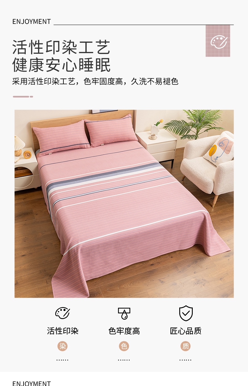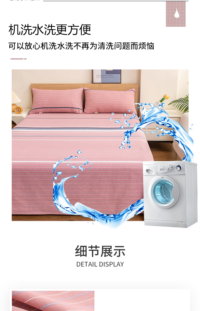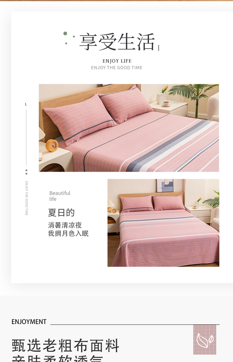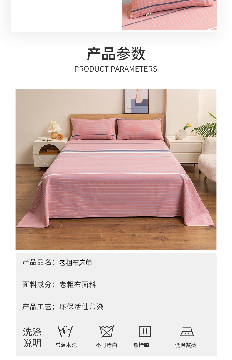 • 91家纺网 家纺一手货源 找家纺 居美良品 2026新款无印风正宗加厚老粗布床单单件枕套三件套可做凉席 简尚-粉