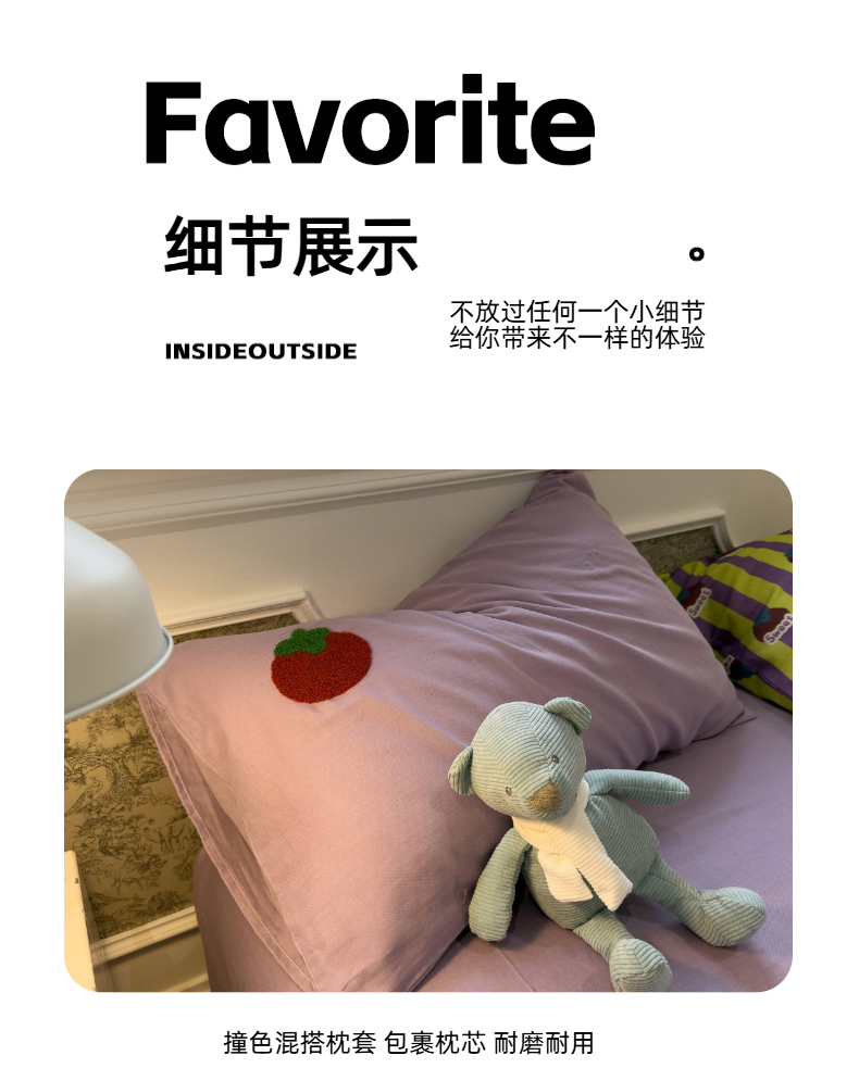 (总)呗旺鹿 2026新款ins风全棉撞色双层纱毛巾绣甜柿子系列四件套,甜柿紫,甜柿蓝,甜柿绿
