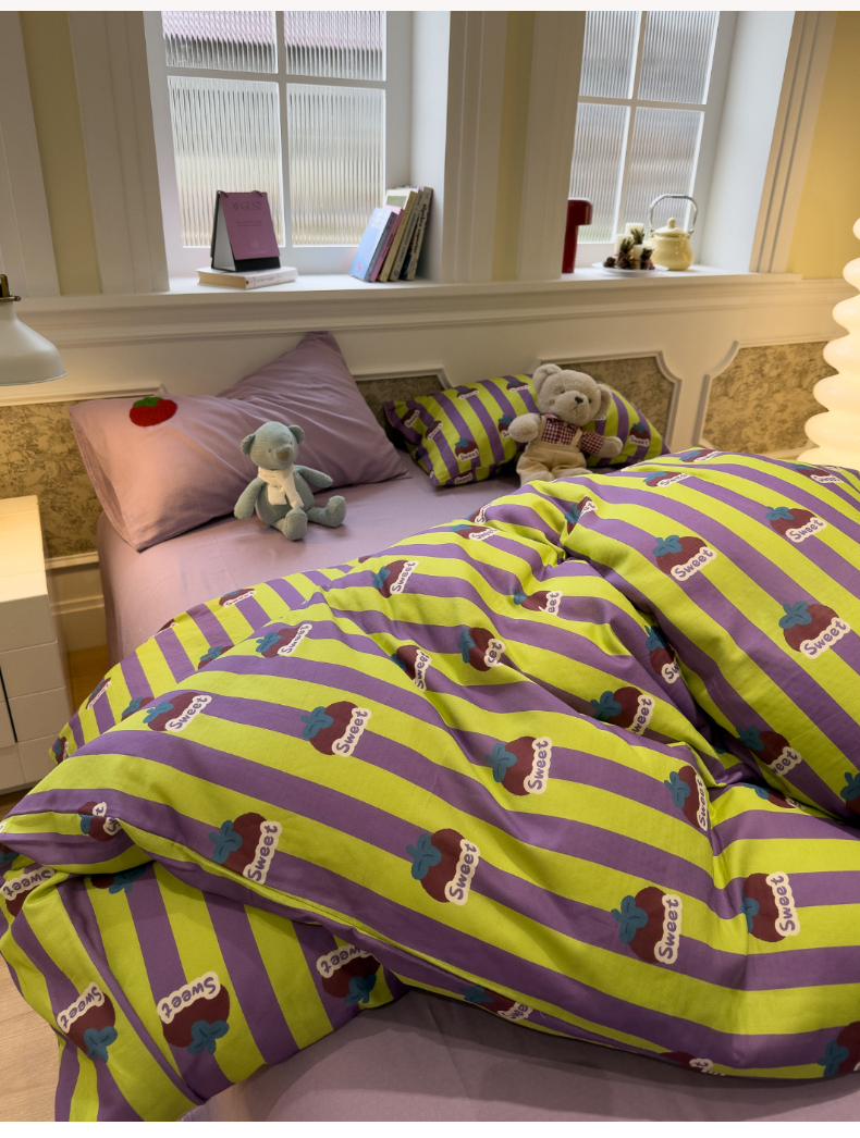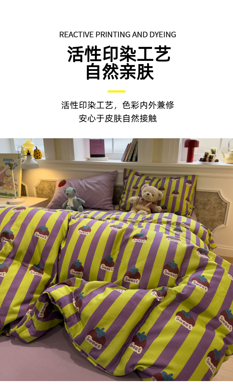 (总)呗旺鹿 2026新款全棉纯棉40支13070卡通印花四件套-场景二,萌星,鼻涕狗,果子象,机灵猫,可爱星人,幸福小熊