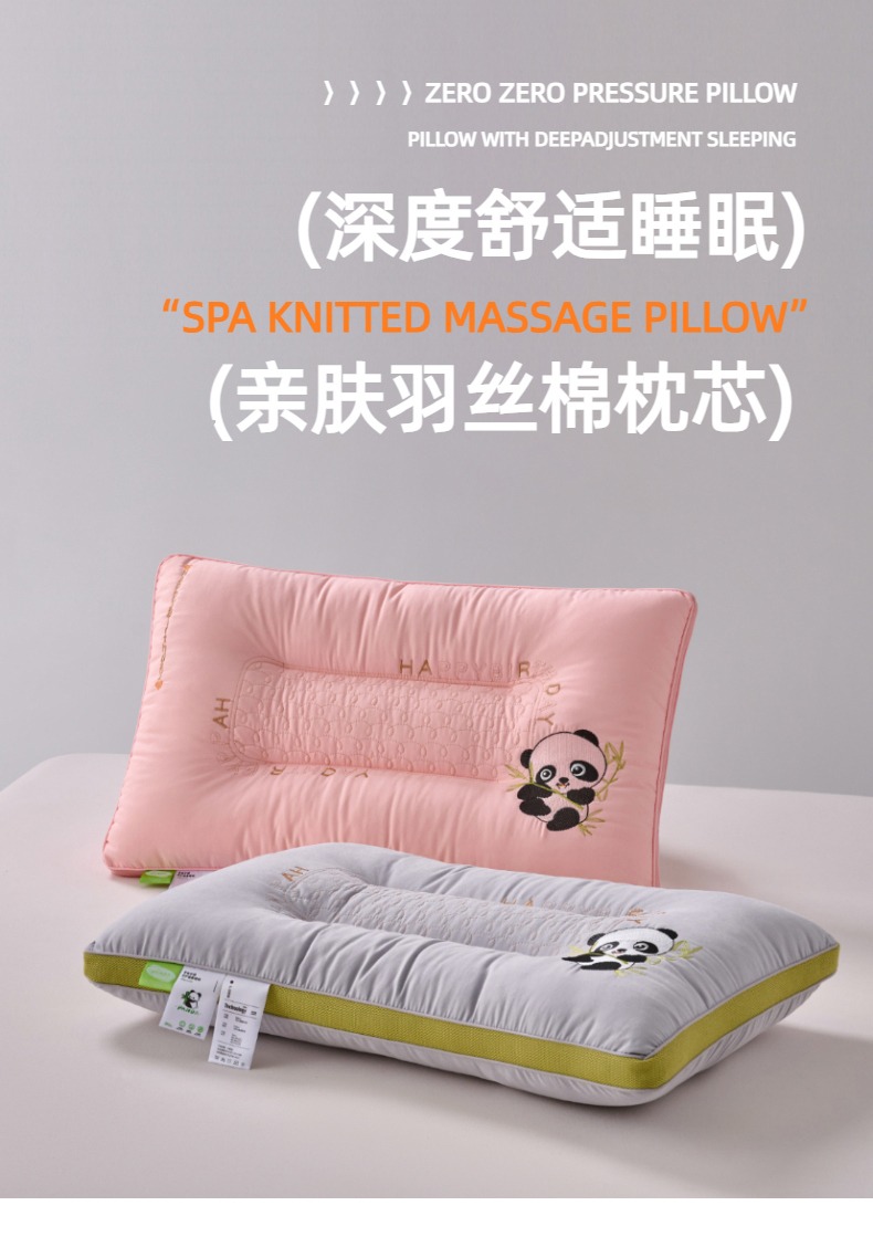 (总)怡薇格枕芯 2026新款刺绣熊猫羽丝绒护颈枕枕头枕芯,亲肤羽丝绒枕-粉,亲肤羽丝绒枕-白,亲肤羽丝绒枕-灰