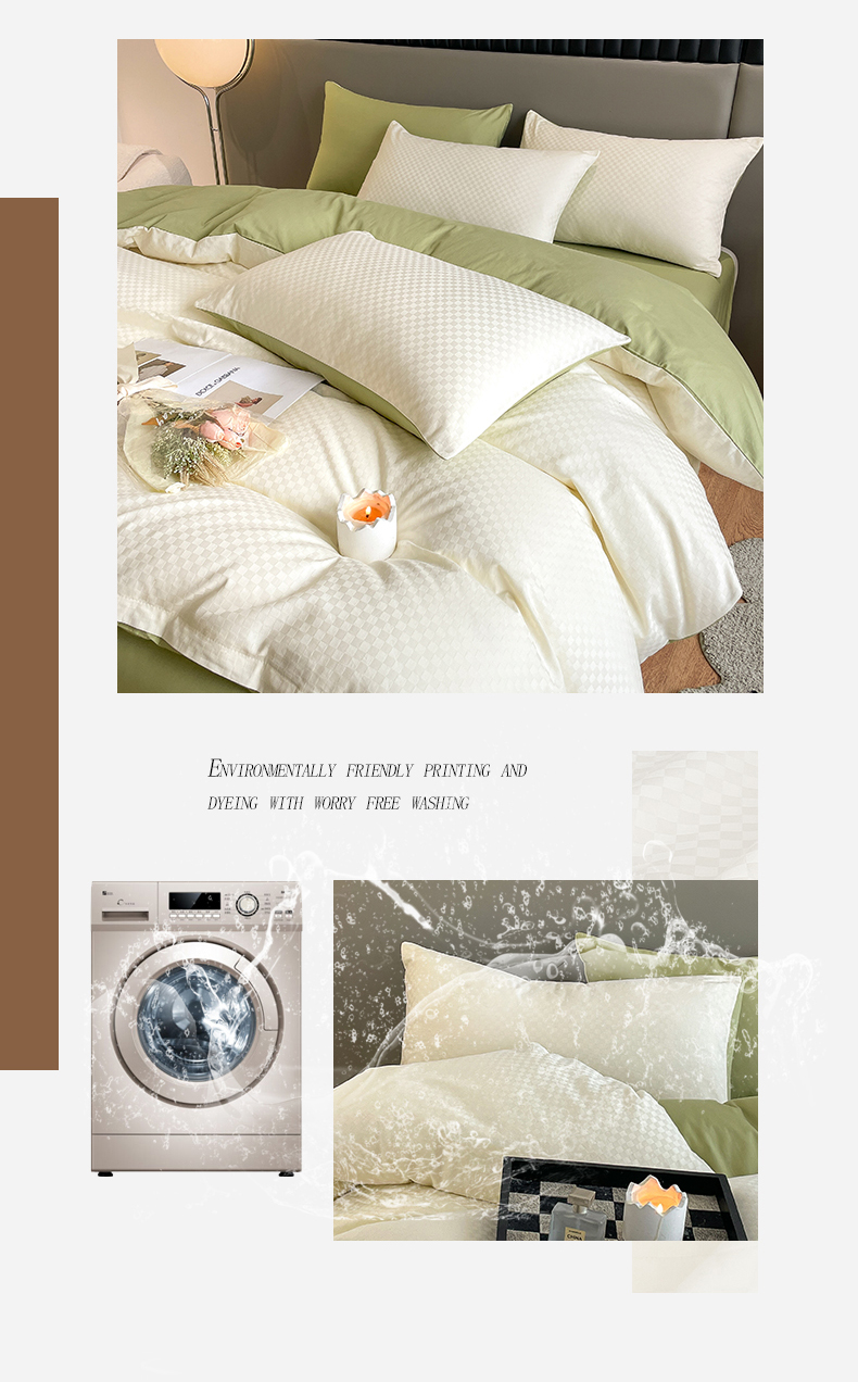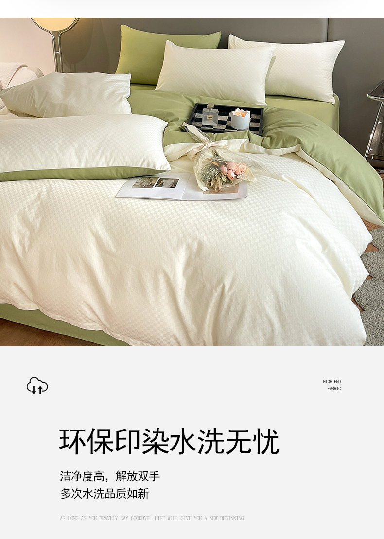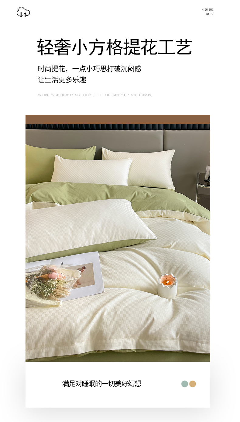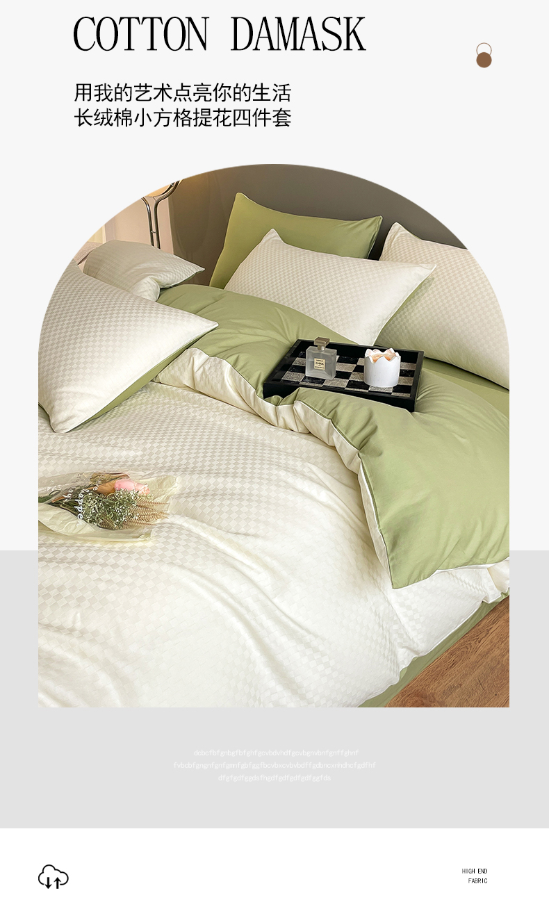 当前位置: 91家纺网 > 商品网购 > 床品套件 > 四件套 > 长绒棉四件套 > 琪格格纺织 2026新款轻奢长绒棉纯棉高级感提花方格酒店名宿居家四件套 60长绒棉-奶昔白+果绿