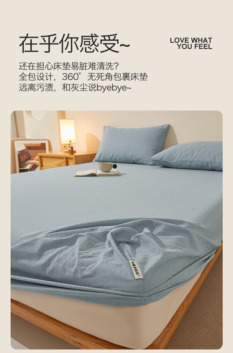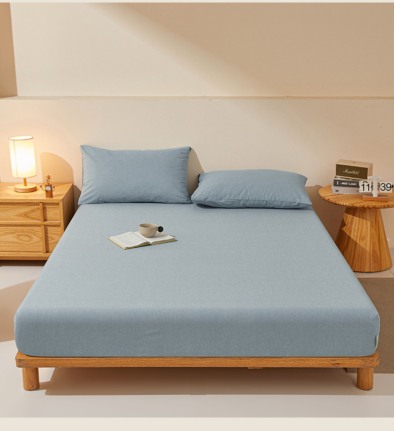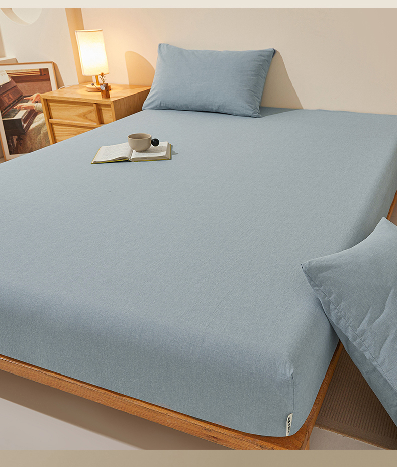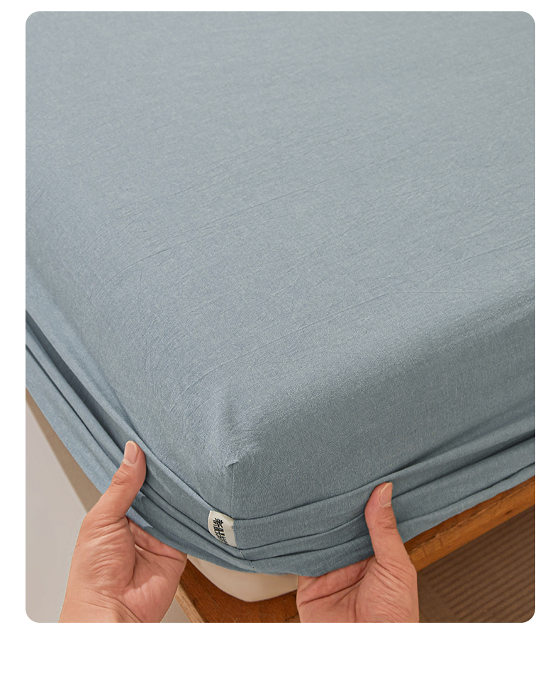 • 91家纺网 家纺一手货源 找家纺 女子家纺 2026新款全棉色织水洗纯色条格纯棉单层床笠床垫保护套 拾忆-浅蓝