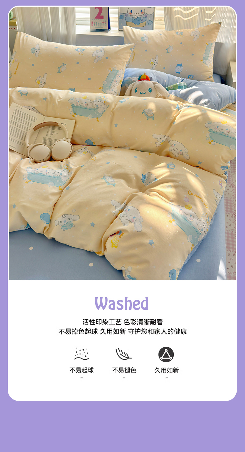 (总)曼之夏 2025新款全棉纯棉40支学生季卡通印花四件套,椰蓝小腊肠,茶茶狗,格子猫,嗨皮狗,开心屋,可爱多,可可汪,玛奇朵,奶昔小熊,泡芙小象,曲奇小狗,趣味熊,甜甜圈,甜心猫咪,童画,小狗日记,樱桃熊仔