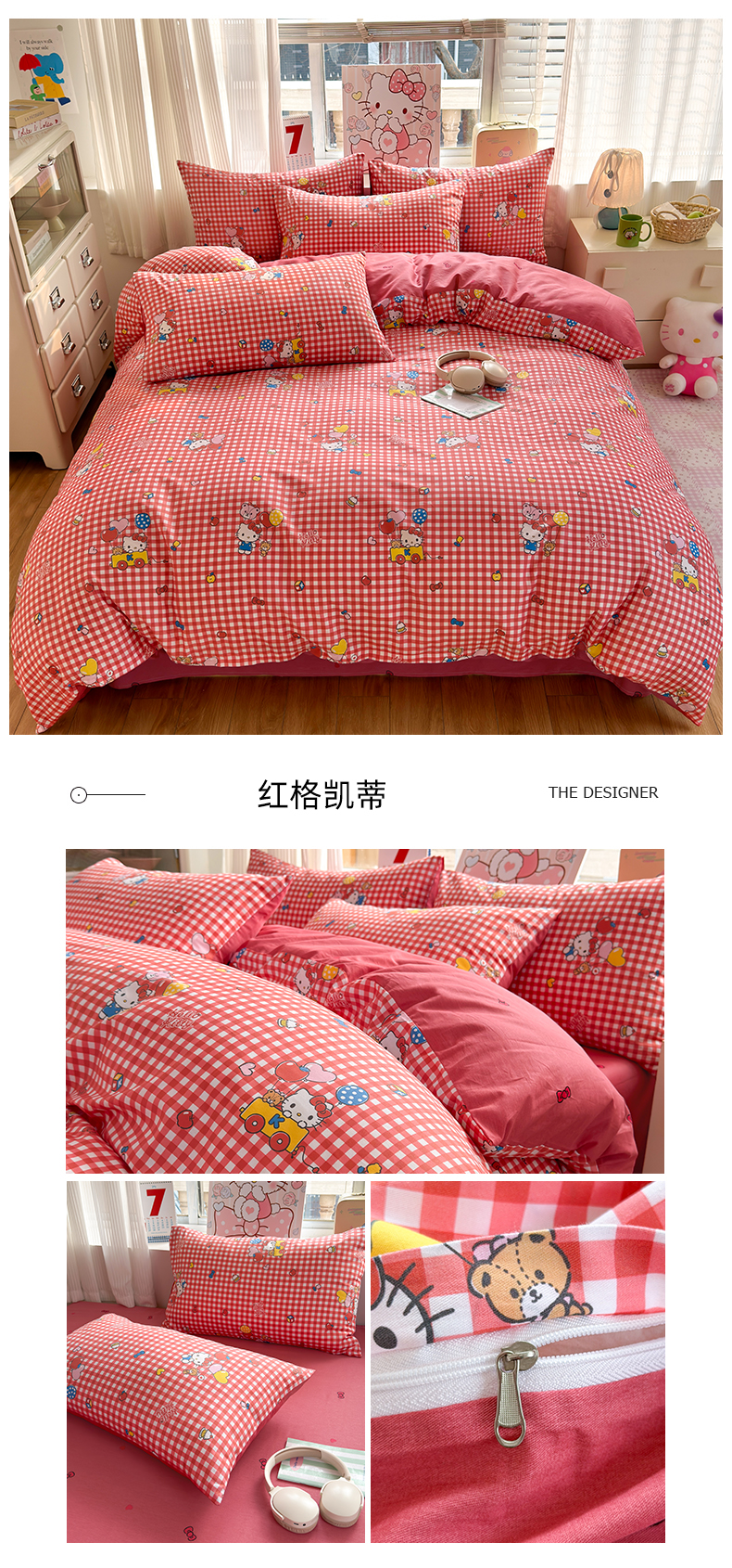 (总)曼之夏 2026新款全棉三丽鸥正版授权卡通四件套,波点美乐蒂,电话凯蒂,都市凯蒂,红格凯蒂,蝴蝶结大耳狗,凯蒂果果,蘑菇凯蒂,牛奶凯蒂,甜甜凯蒂,晚安大耳狗,樱桃凯蒂,游乐园大耳狗,元气美乐蒂,运动凯蒂