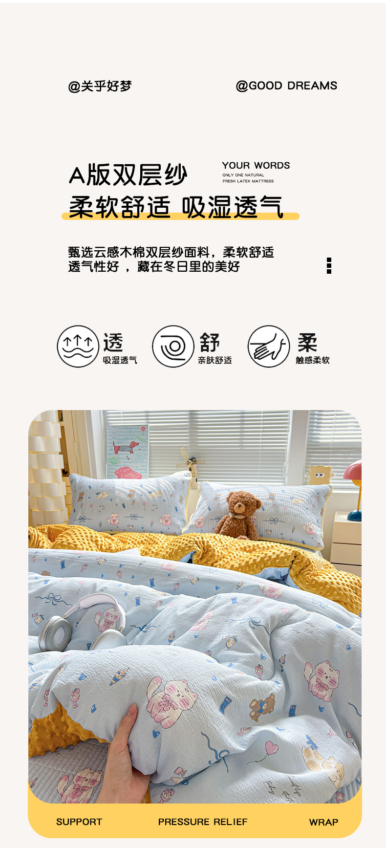 • 91家纺网 家纺一手货源 找家纺 优选 2026新款木棉印花床盖三件套 童话世界