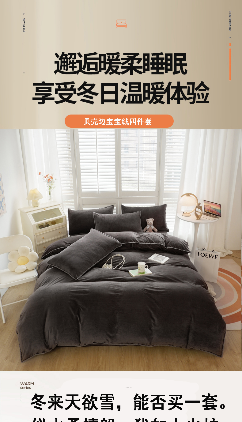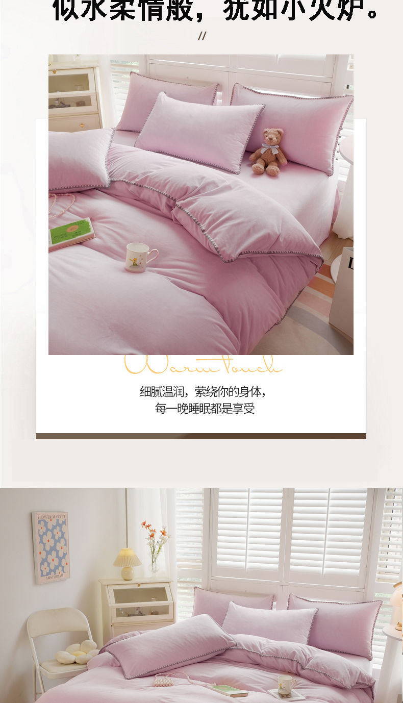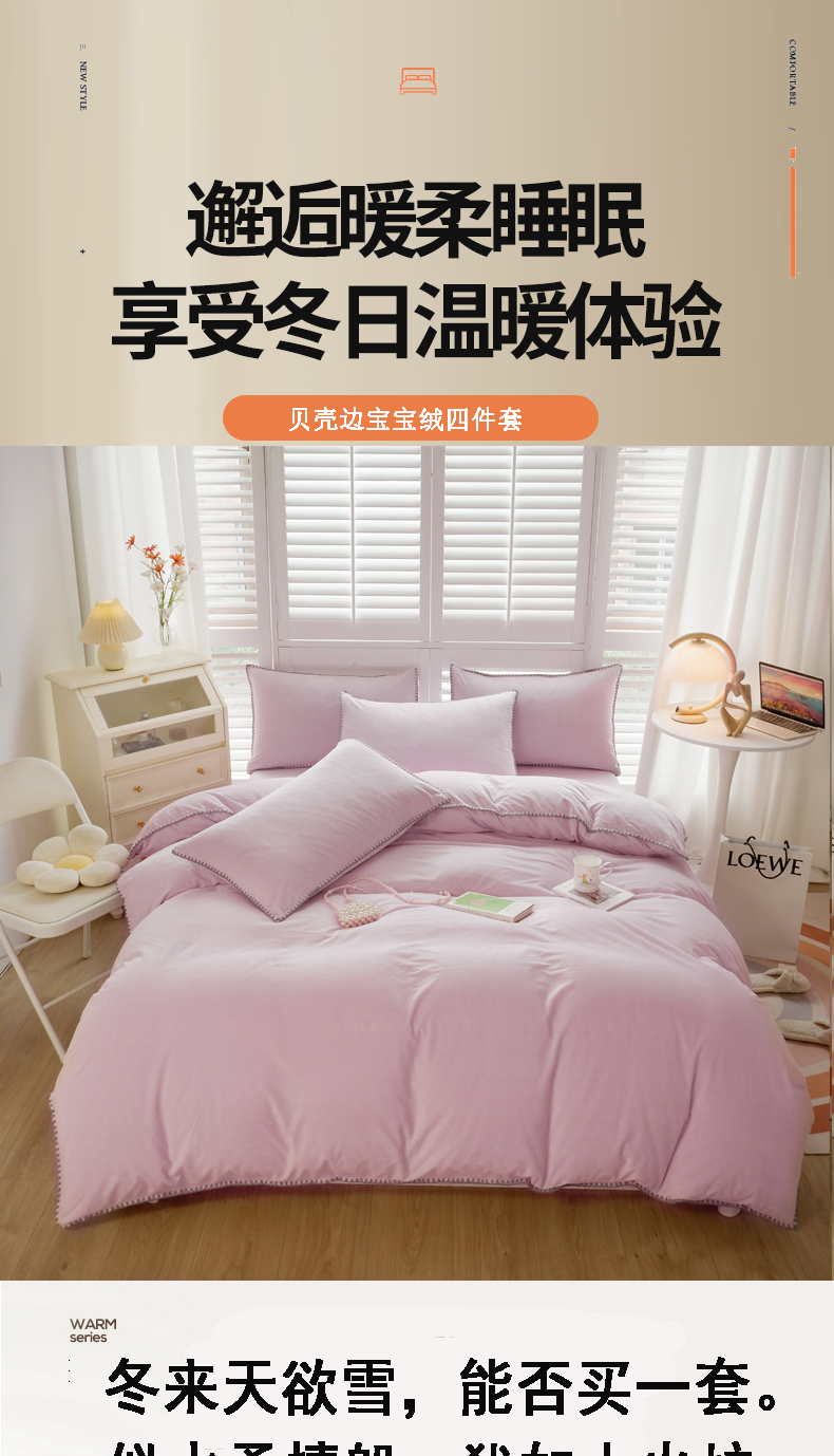 当前位置: 91家纺网 > 商品网购 > 床品套件 > 四件套 > 其它四件套 > 啊雅家居 2026新款贝壳边宝宝绒四件套 贝壳清粉