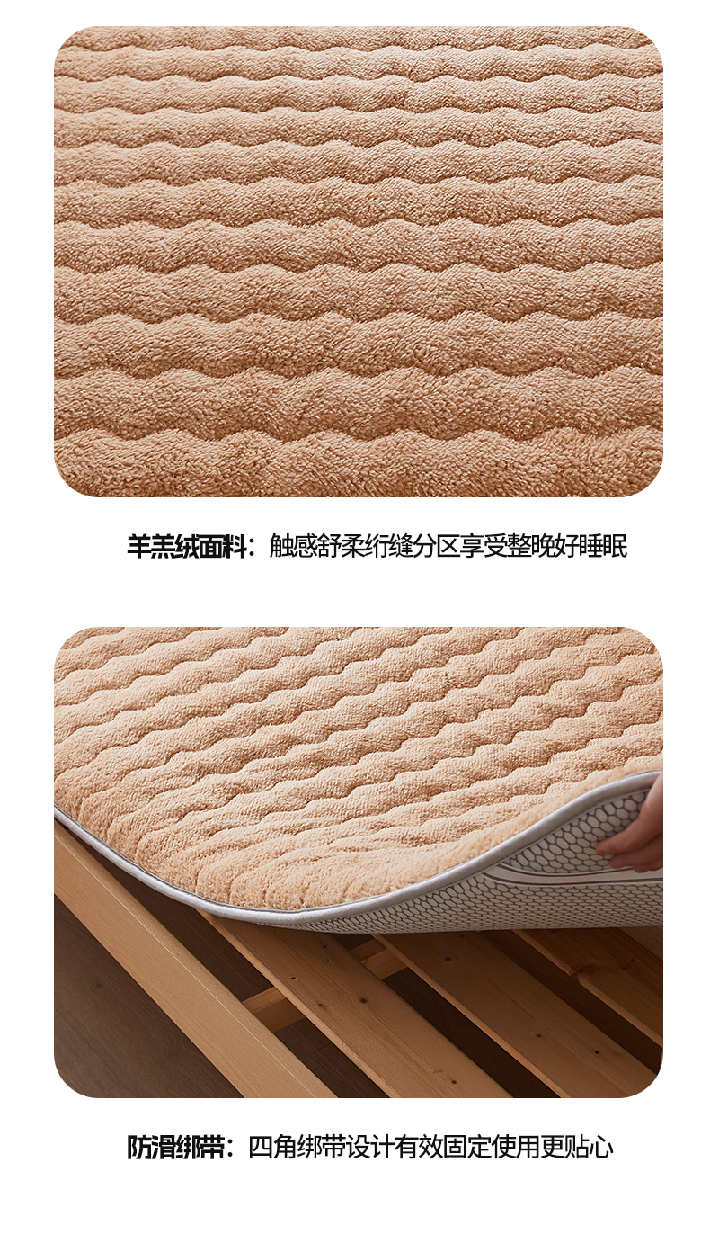 当前位置: 91家纺网 > 商品网购 > 床垫/床褥 > 羊羔绒床垫 > 月茶家纺 2026新款高克重羊羔绒床垫垫子 驼色