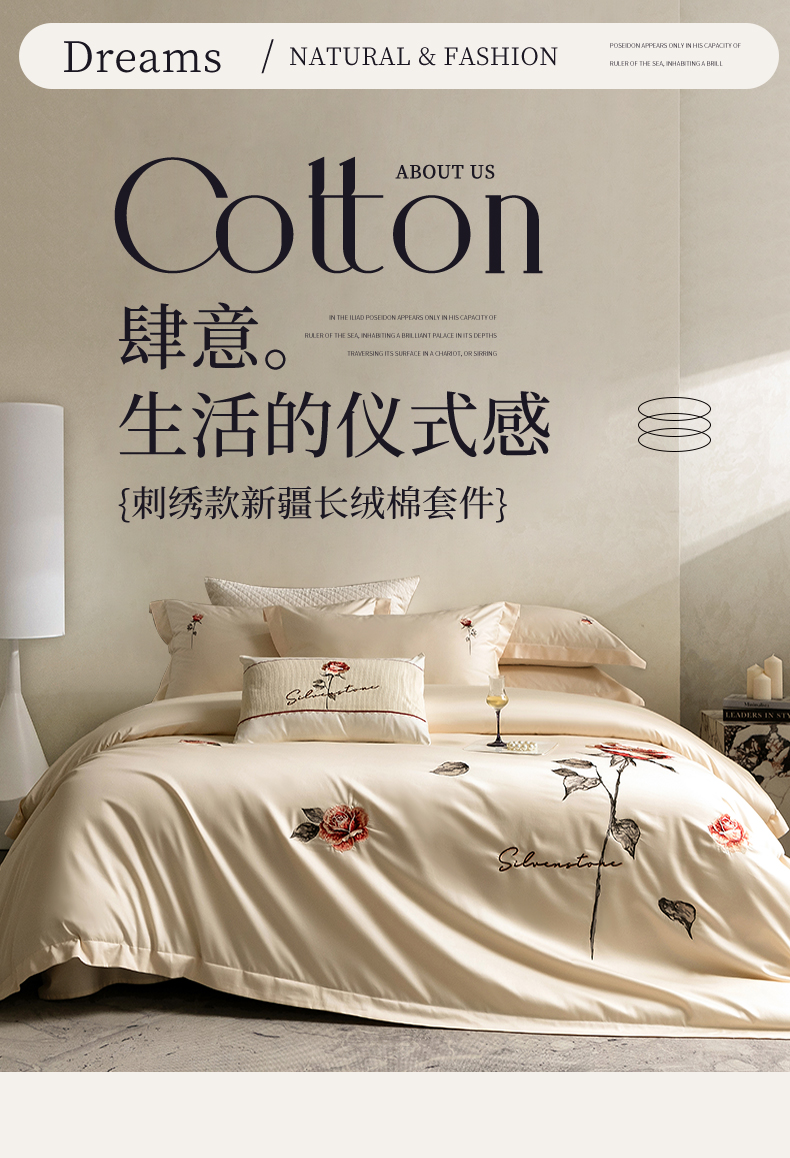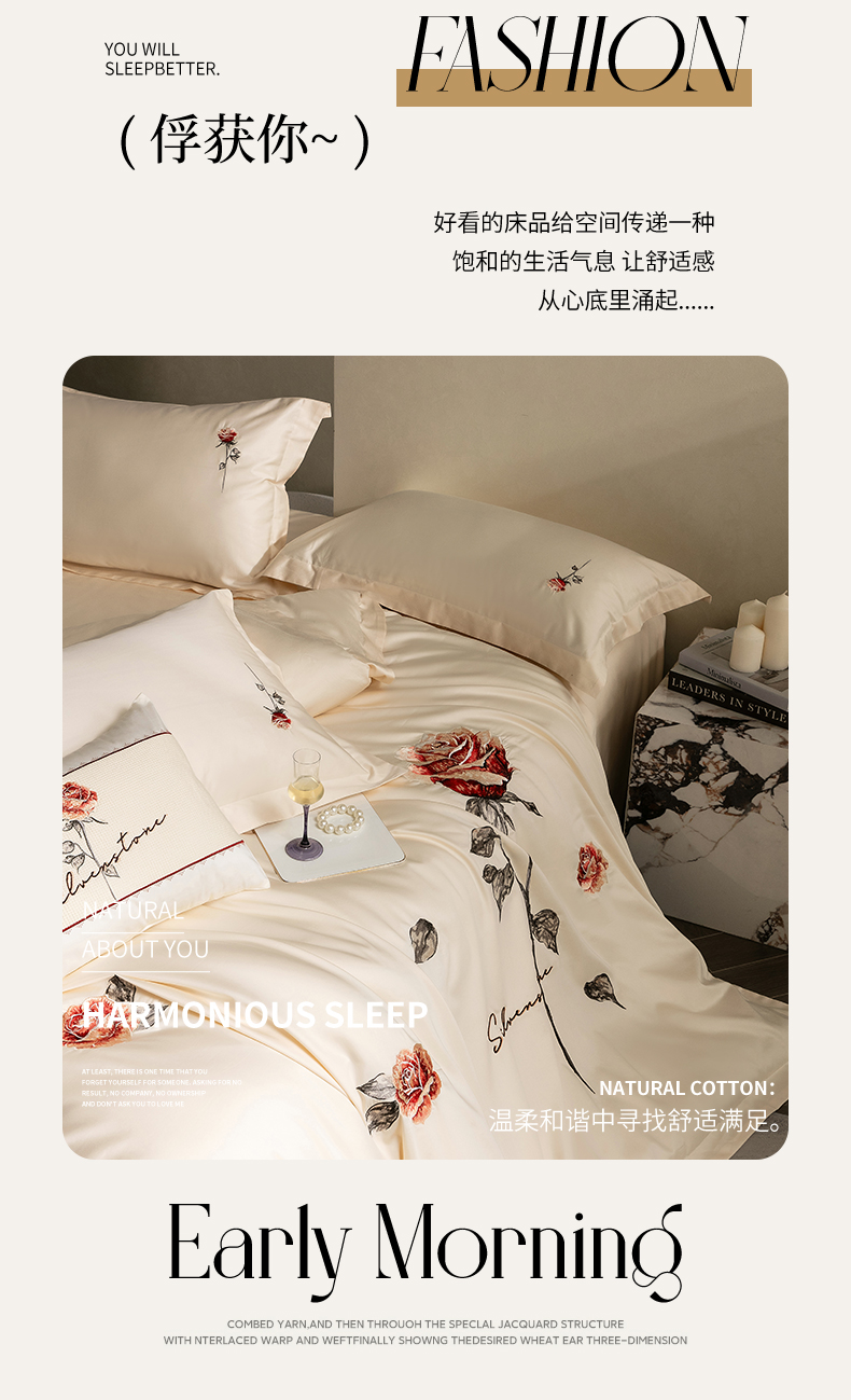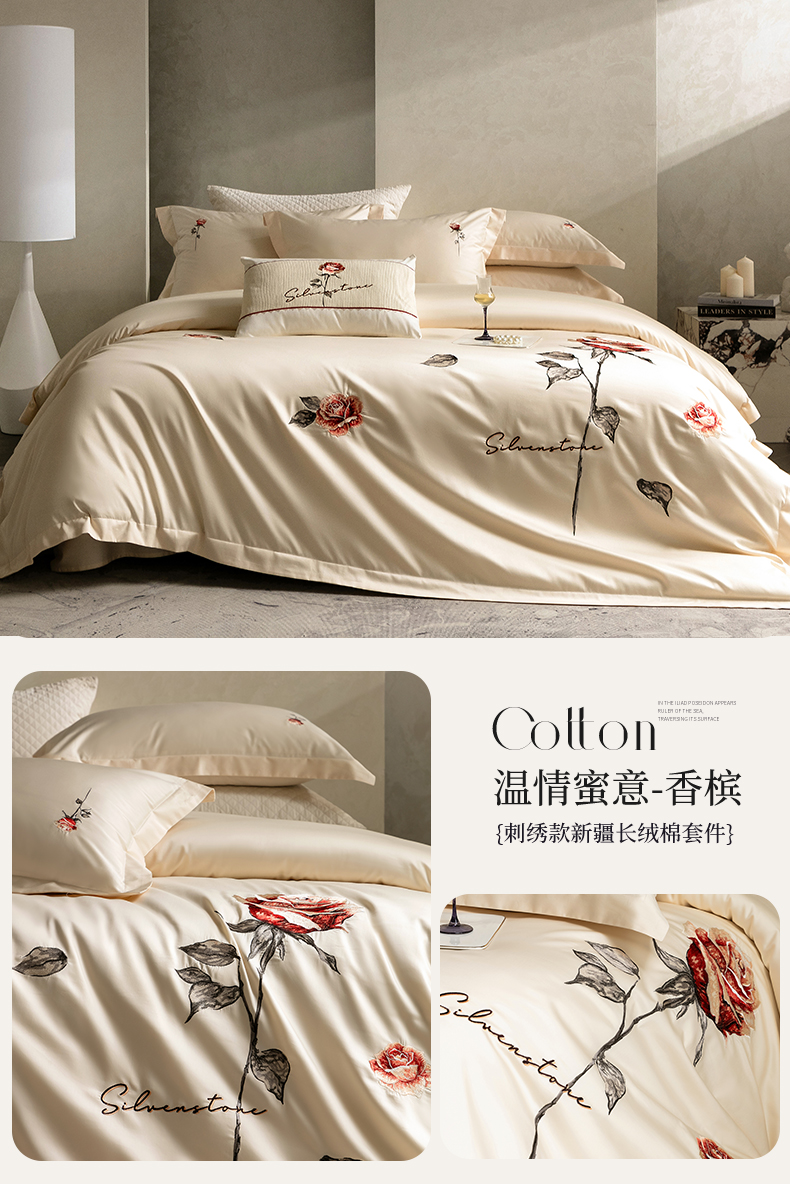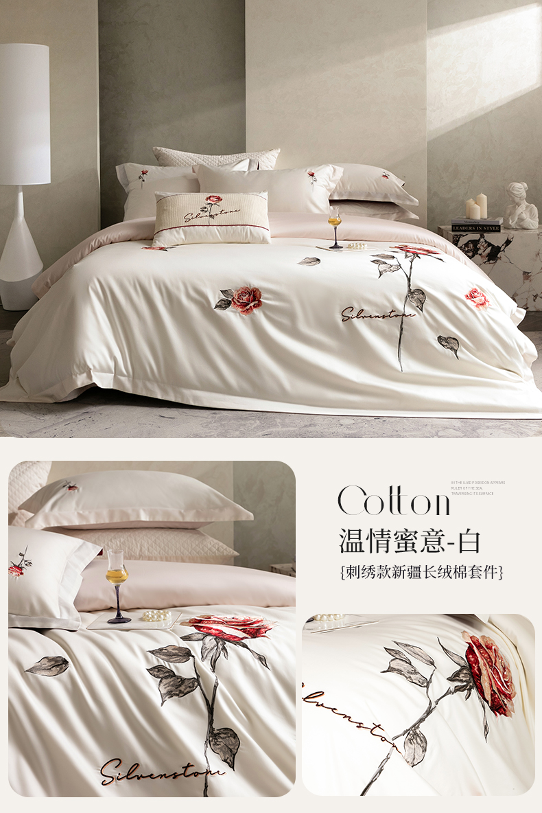 (总)优悦生活馆 2026新款全棉新疆长绒棉刺绣四件套-温情蜜意,温情蜜意-香槟,温情蜜意-白,温情蜜意-粉