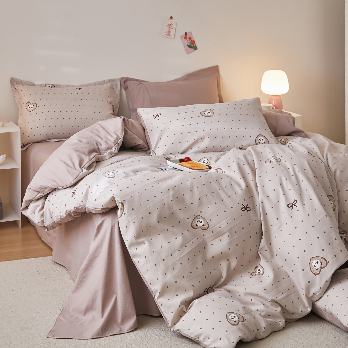 (总)梦纤绒 2026新款香云锦仿棉高克重四件套,爱心熊,粉格蝴蝶结,可爱多多猫,南瓜派,树叶萌象,甜梦撞色心,小马格韵,布拉格灰,竹影清风,紫韵花