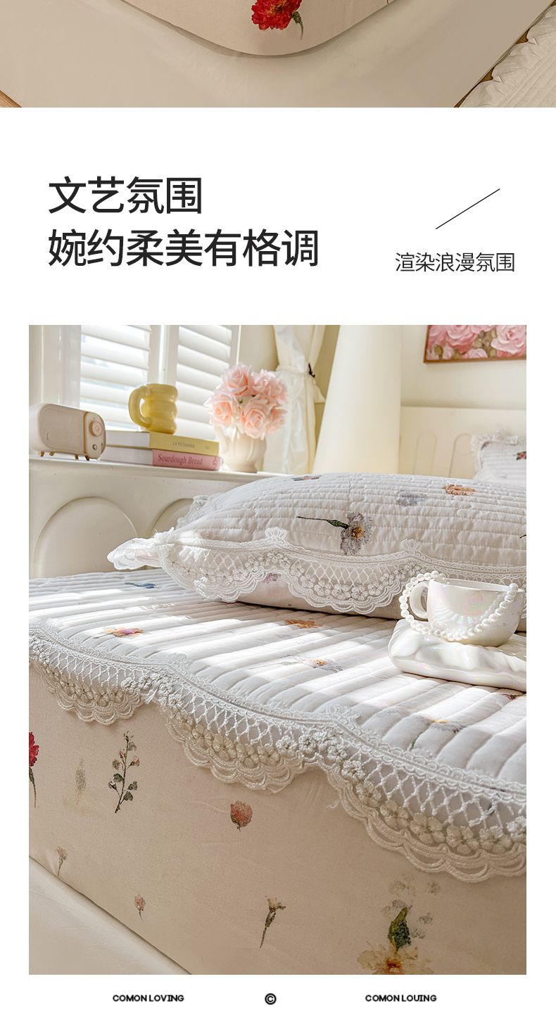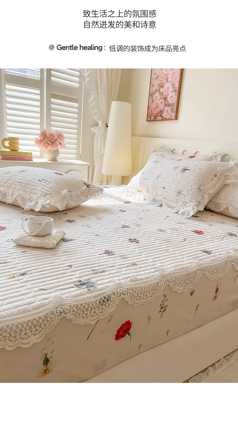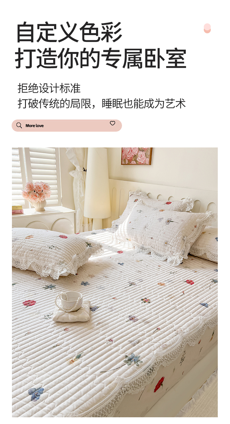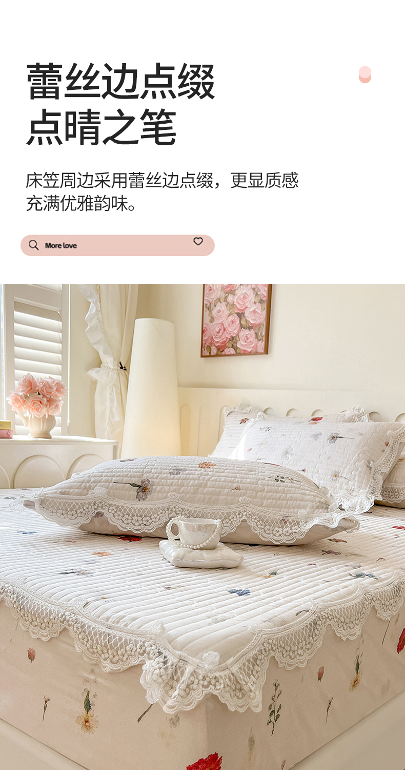 (总)网红馆(ck家纺) 2026新款全棉蕾丝花边床裙款床笠晨暮花间系列,绯红,粉色,麦绿,米色,浅紫,雾蓝