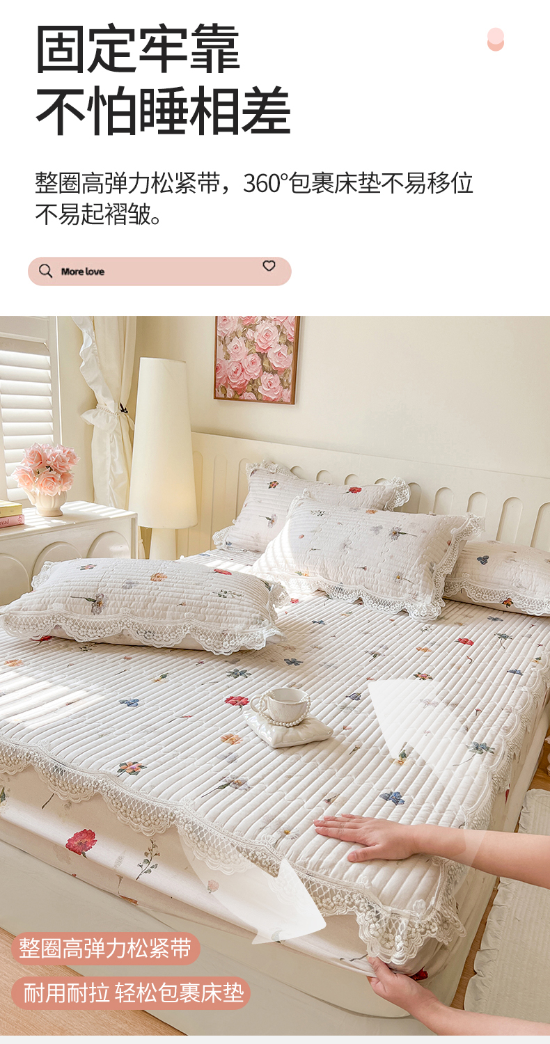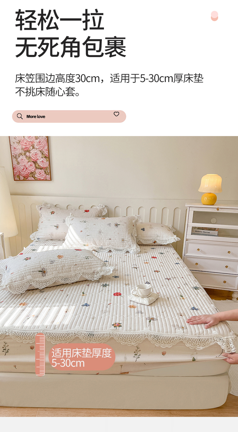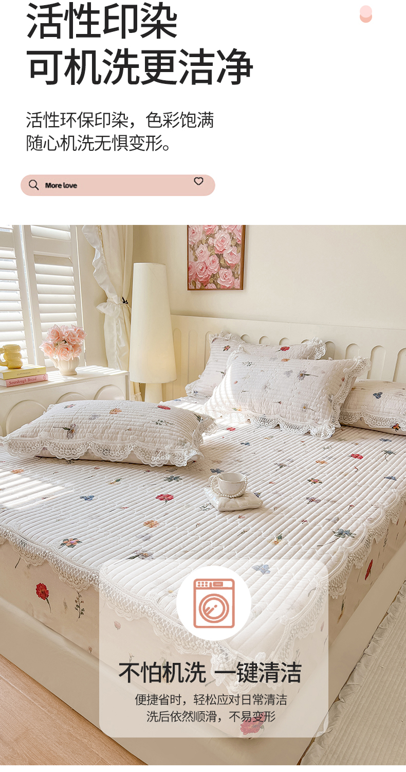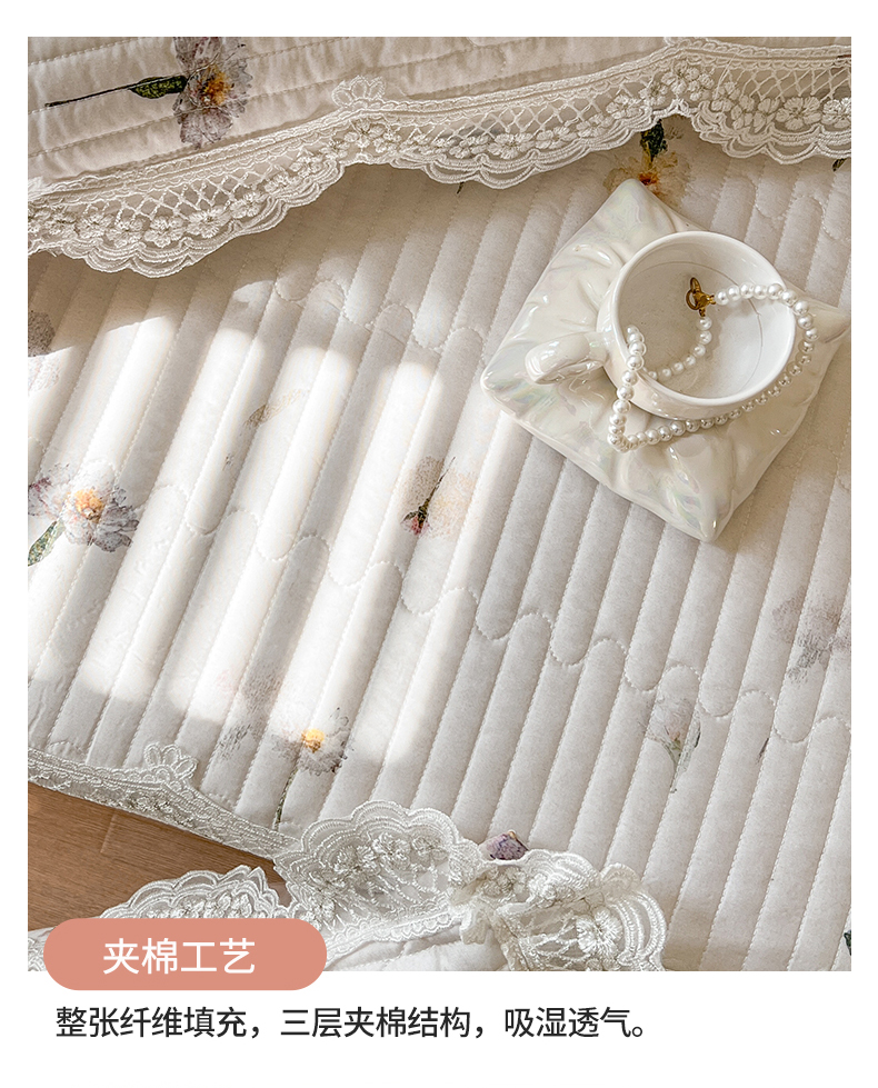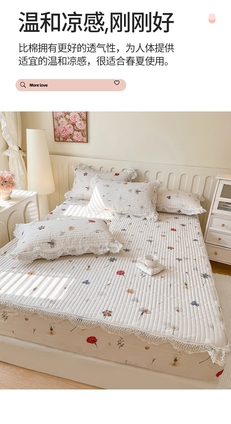 (总)网红馆(ck家纺) 2026新款全棉蕾丝花边床裙款床笠晨暮花间系列,绯红,粉色,麦绿,米色,浅紫,雾蓝