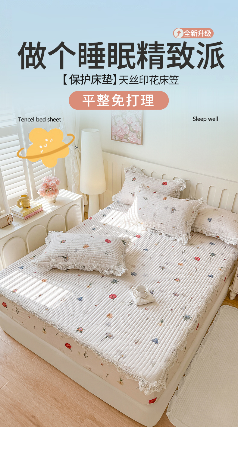 (总)网红馆(ck家纺) 2026新款泡泡棉印花床笠三件套,花儿朵朵,花莫,甜心草莓,小清新,熊宝宝,悠悠花海,紫色恋人