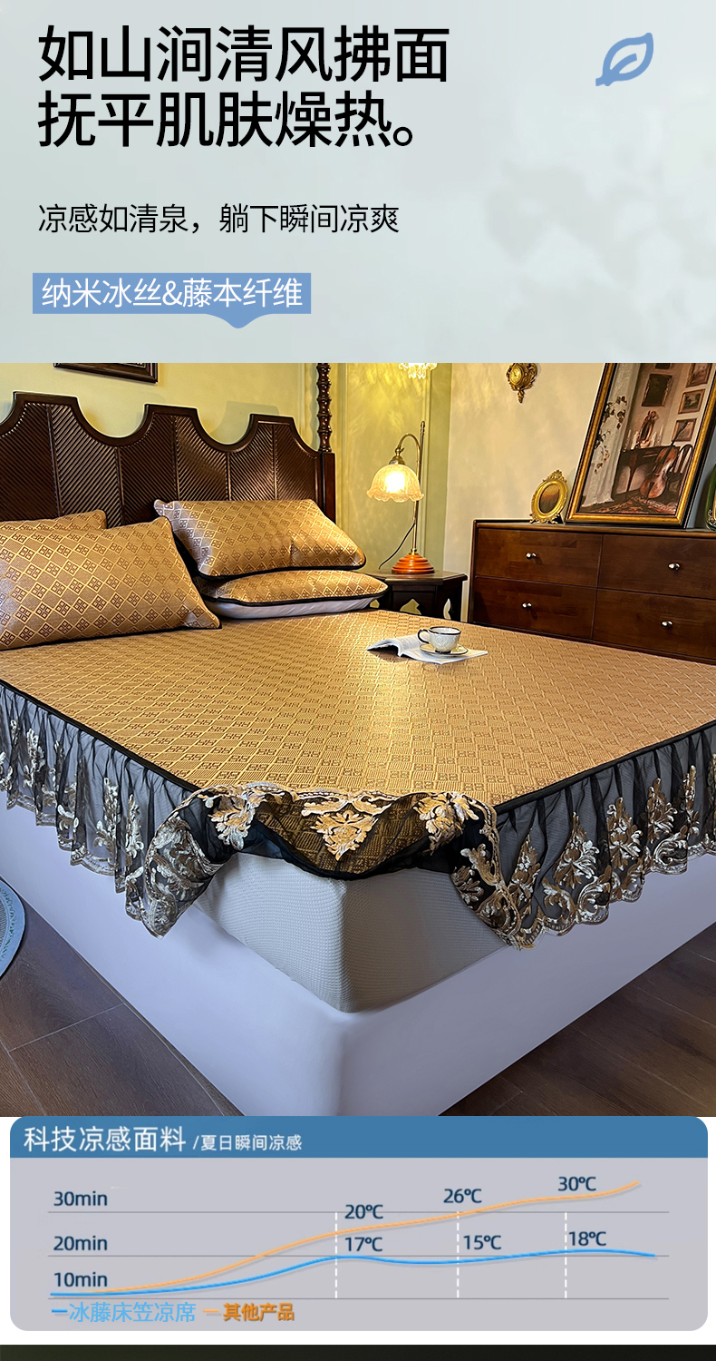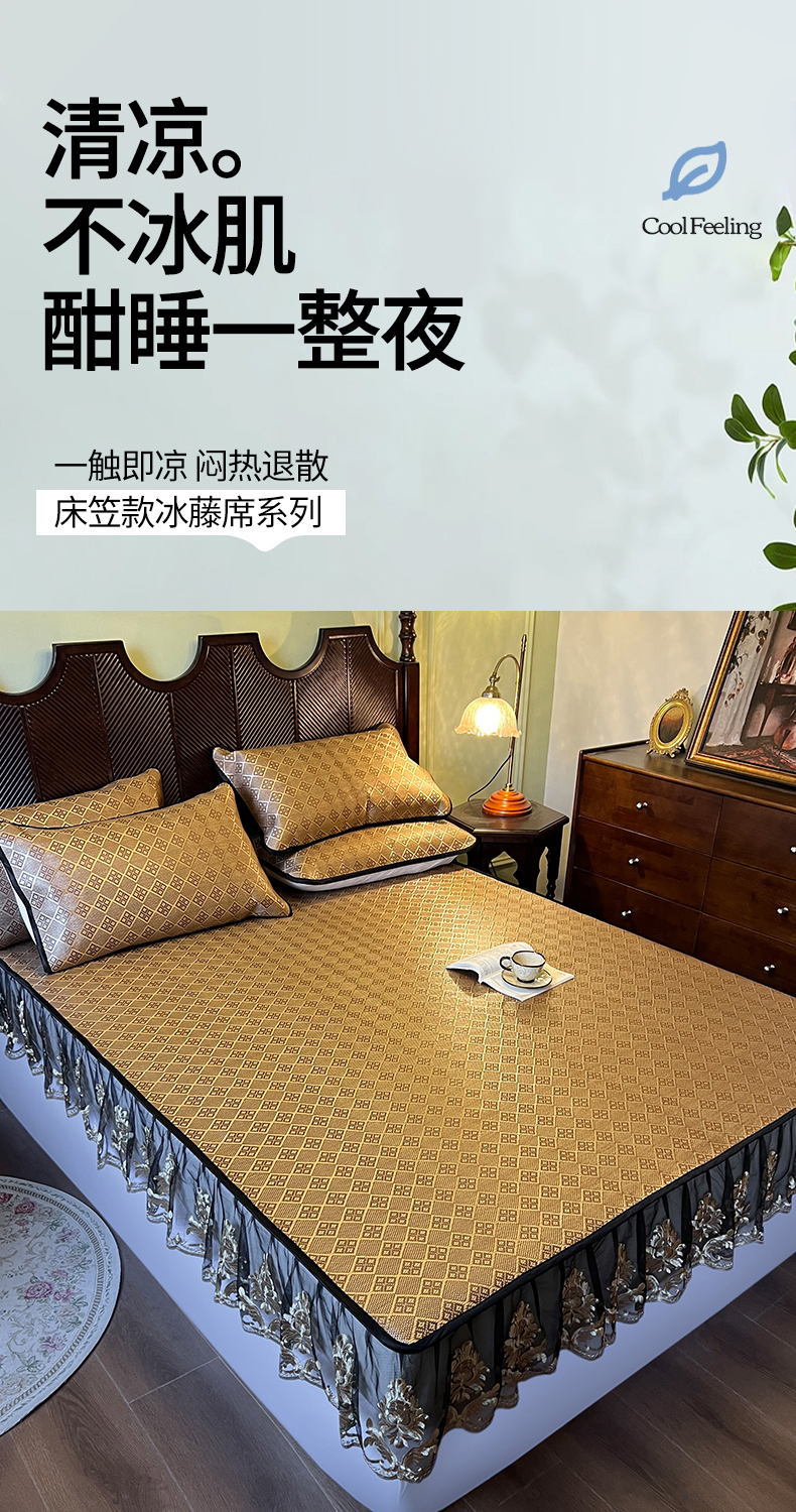 网红馆(ck家纺) 2026新款床笠款冰藤席夏日记忆系列 茶色