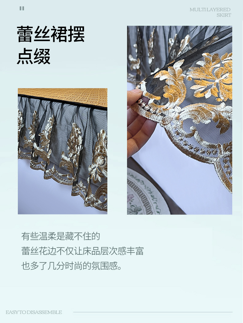 (总)网红馆(ck家纺) 2026新款色织蕾丝边床裙款床笠,宝石蓝,黛绿色,浪漫紫,奶茶色,石青,香妃粉,烟熏灰