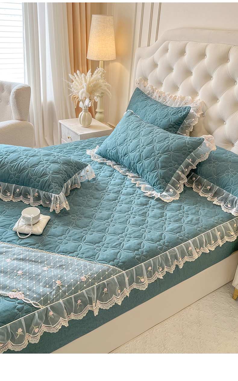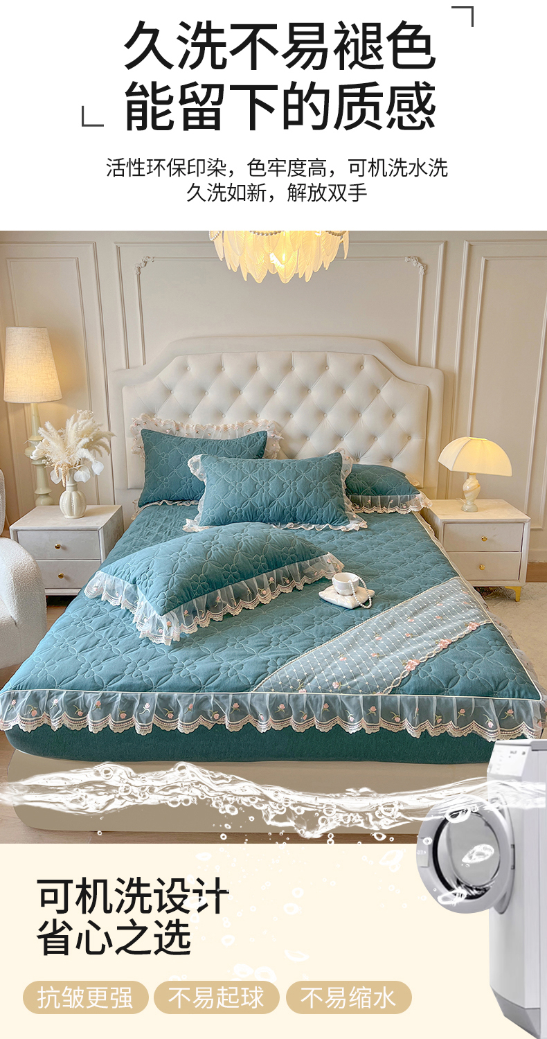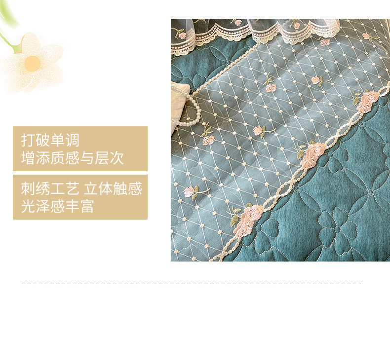 当前位置: 91家纺网 > 商品网购 > 床上用品 > 床笠 > 网红馆(ck家纺) 2026新款色织蕾丝边床裙款床笠 黛绿色