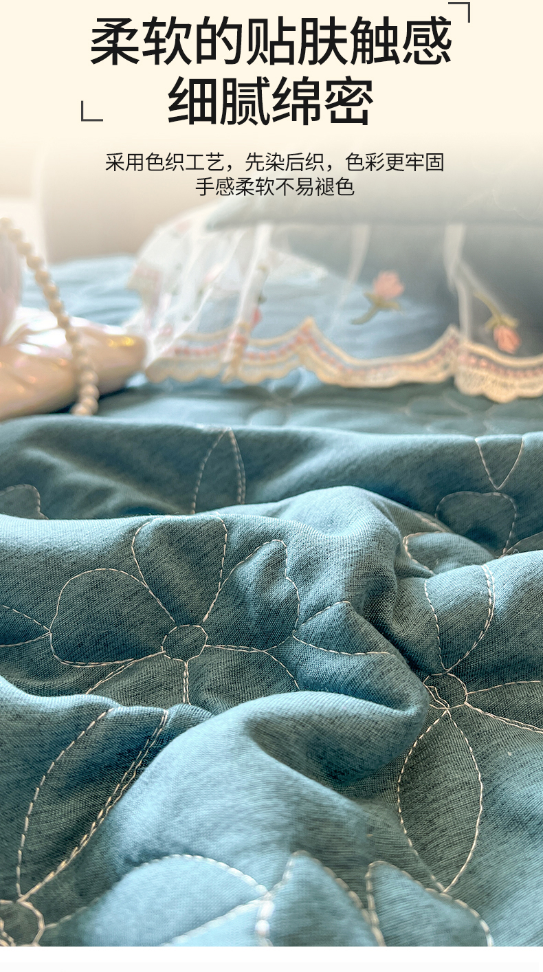 • 91家纺网 家纺一手货源 找家纺 网红馆(ck家纺) 2026新款色织蕾丝边床裙款床笠 黛绿色