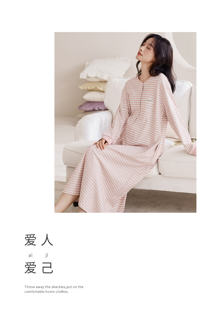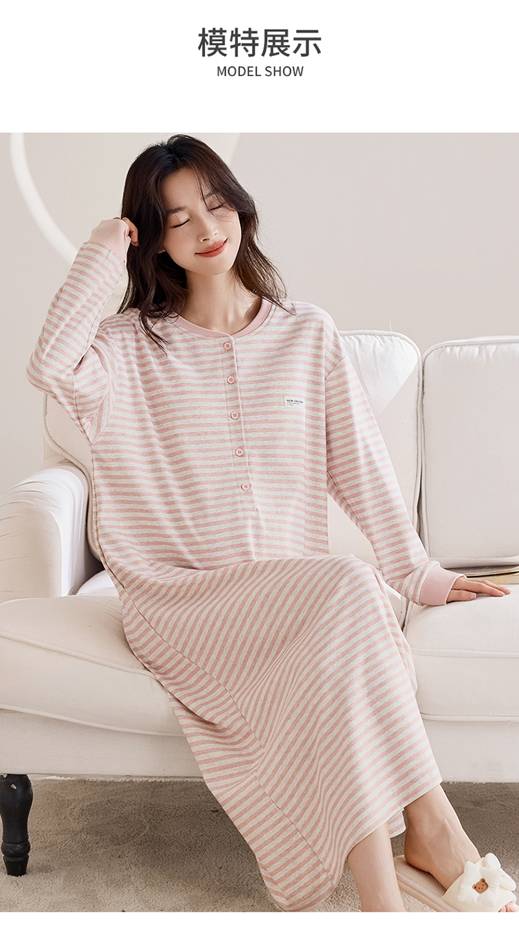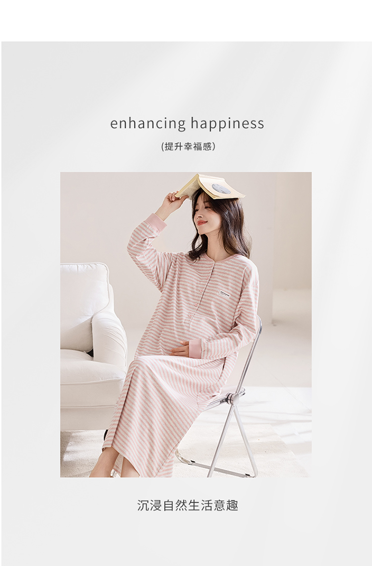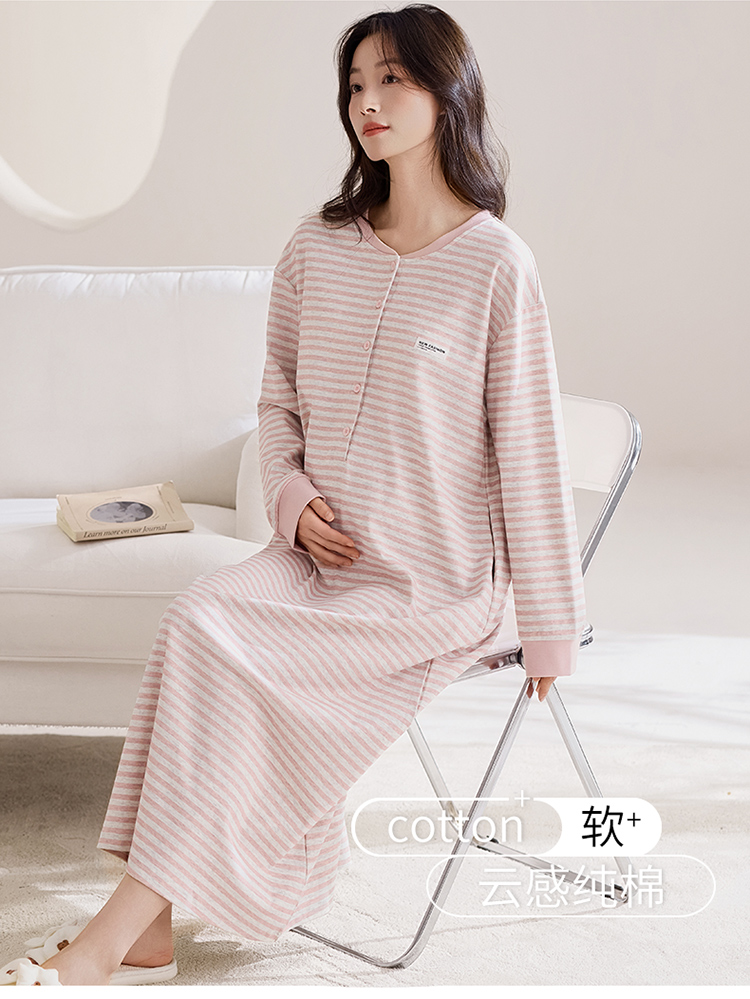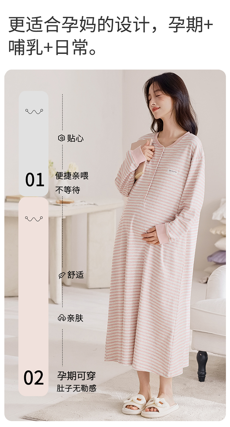 商品名称:洛兰沙家居馆 2026新款长袖全棉纯棉孕妇睡裙女带胸垫产前产后哺乳喂奶月子服连衣裙 月子裙2