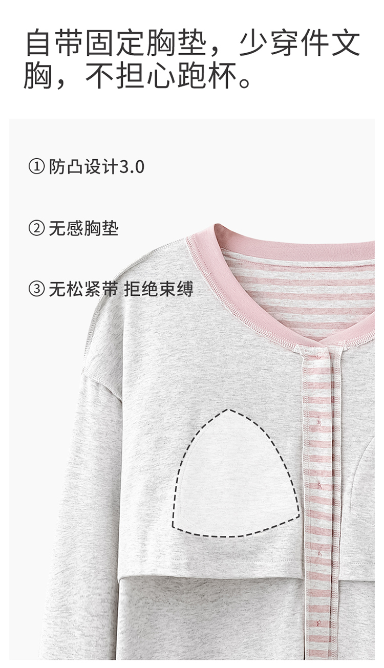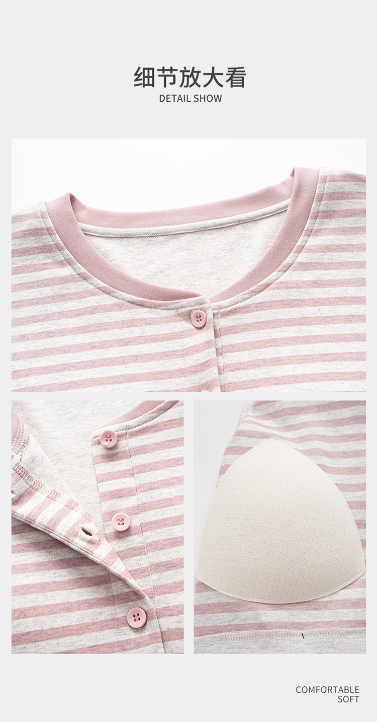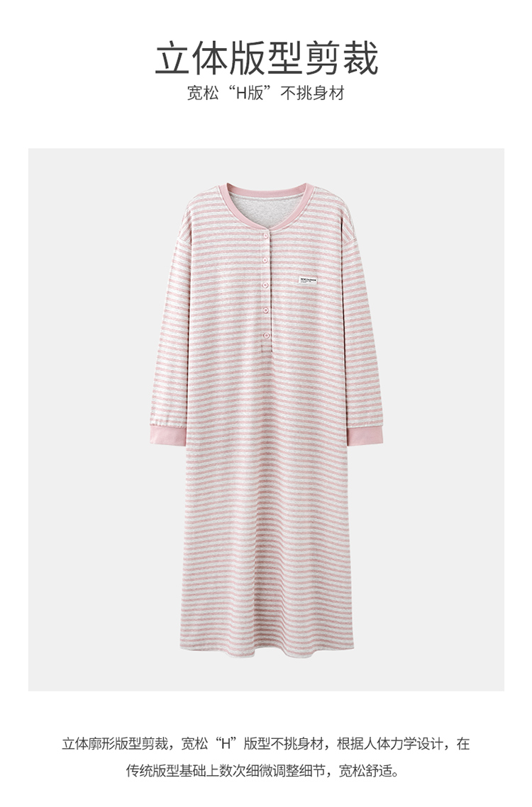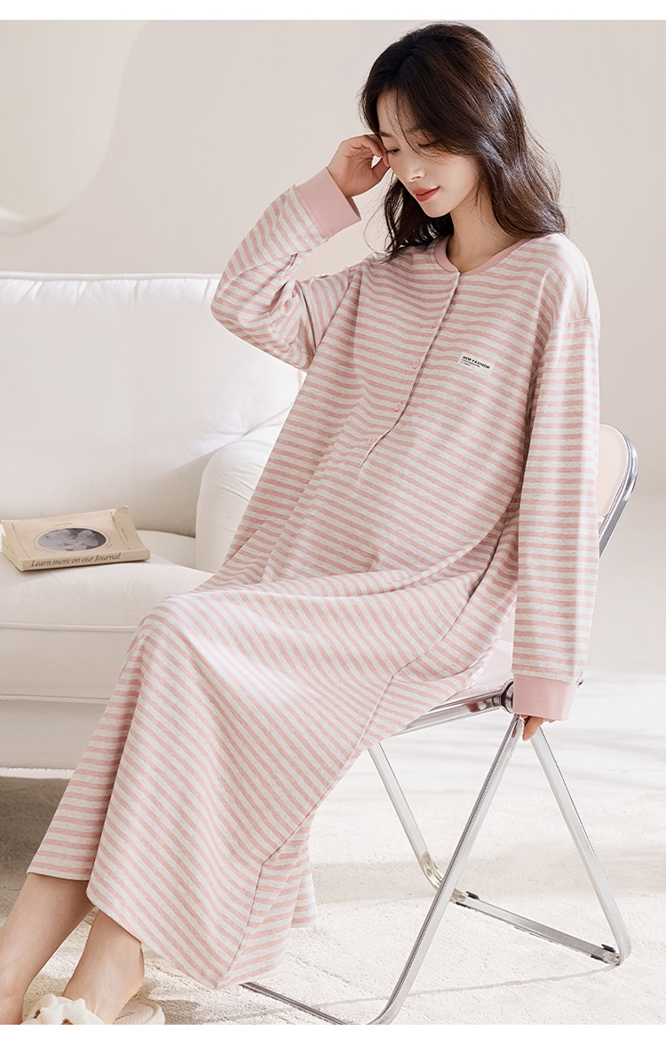 商品名称:洛兰沙家居馆 2026新款长袖全棉纯棉孕妇睡裙女带胸垫产前产后哺乳喂奶月子服连衣裙 月子裙2