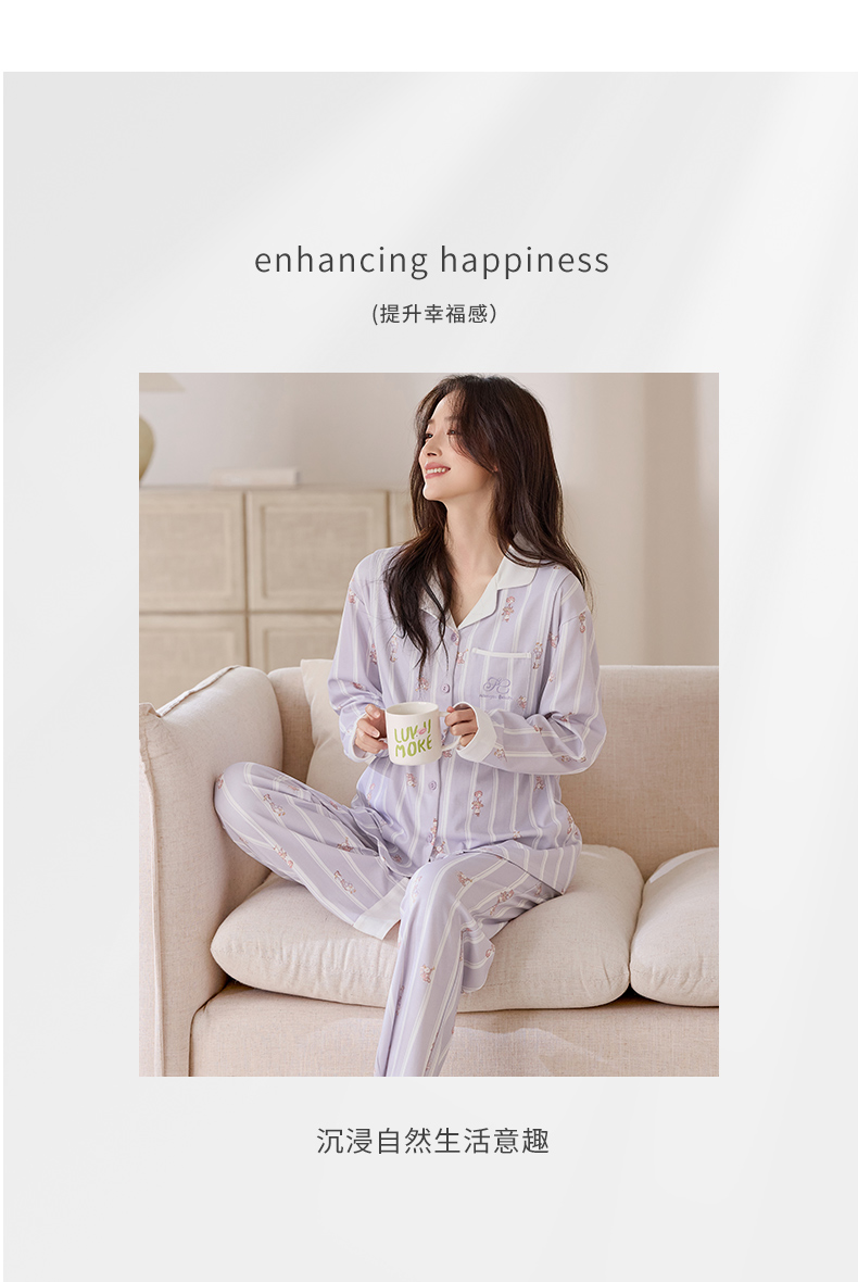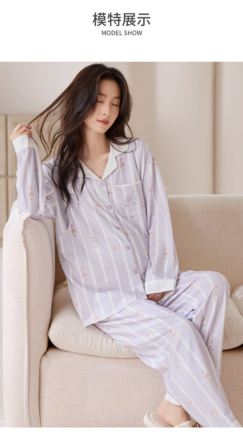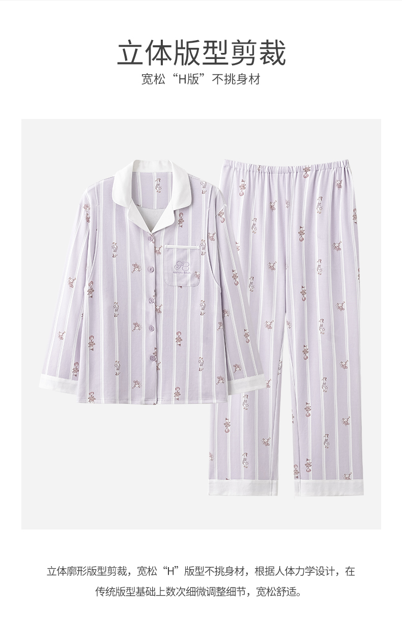 商品名称:洛兰沙家居馆 2026春秋季新款小清新针织全棉纯棉100%翻领开衫双长孕妇月子服睡衣女 翻领套装3