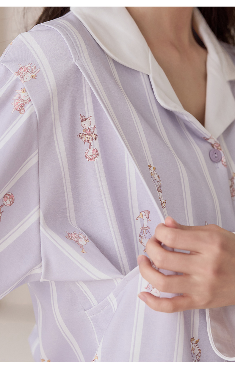 洛兰沙家居馆 2026春秋季新款小清新针织全棉纯棉100%翻领开衫双长孕妇月子服睡衣女 翻领套装3