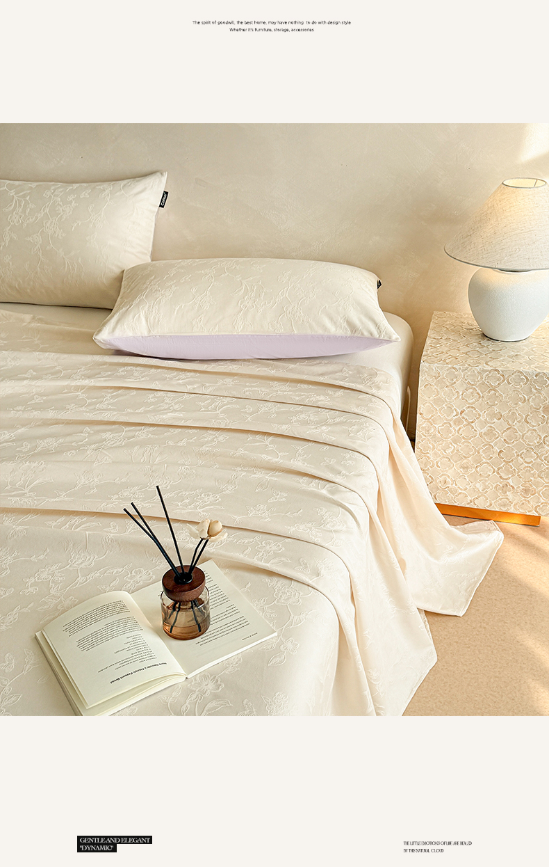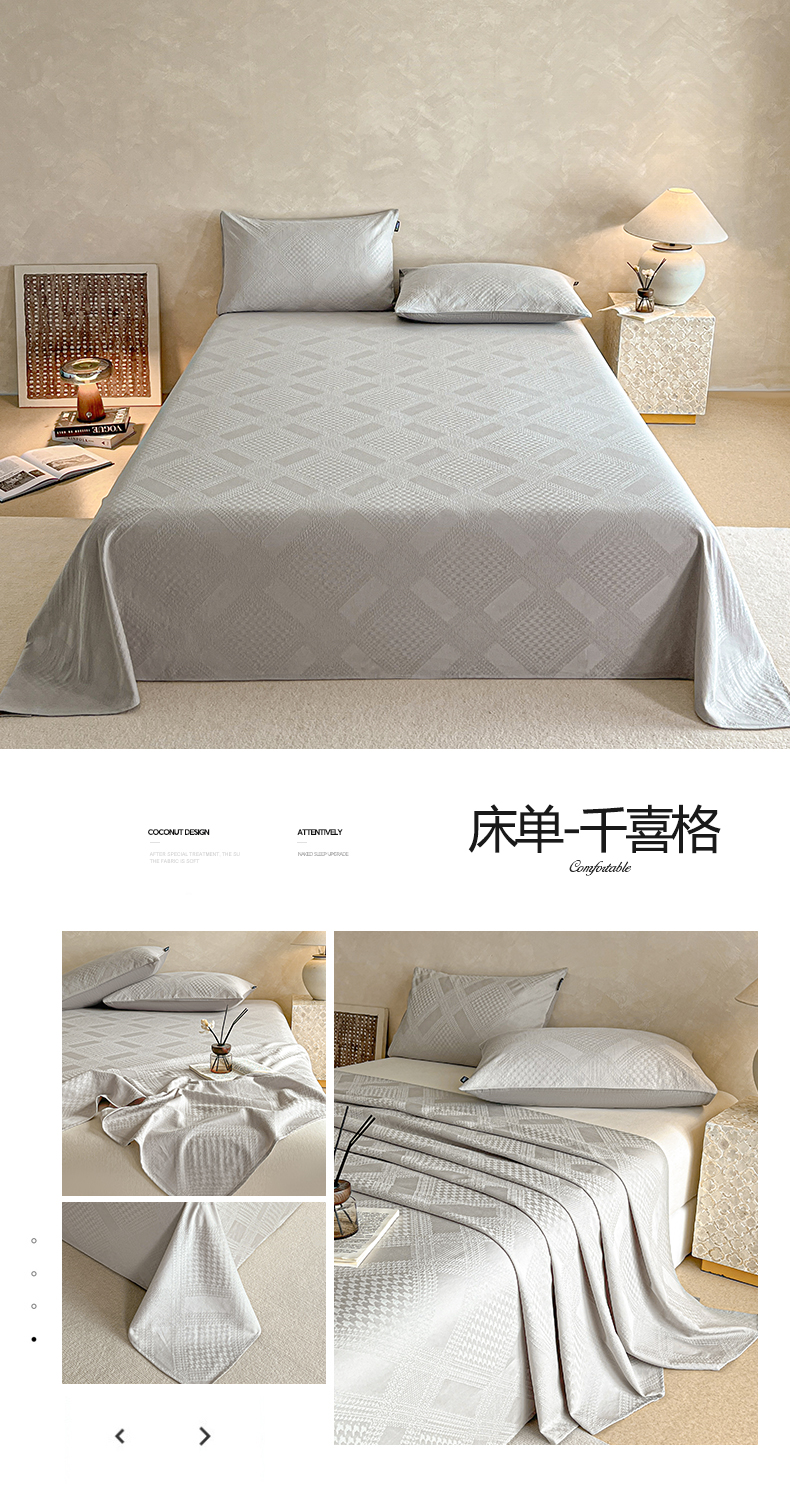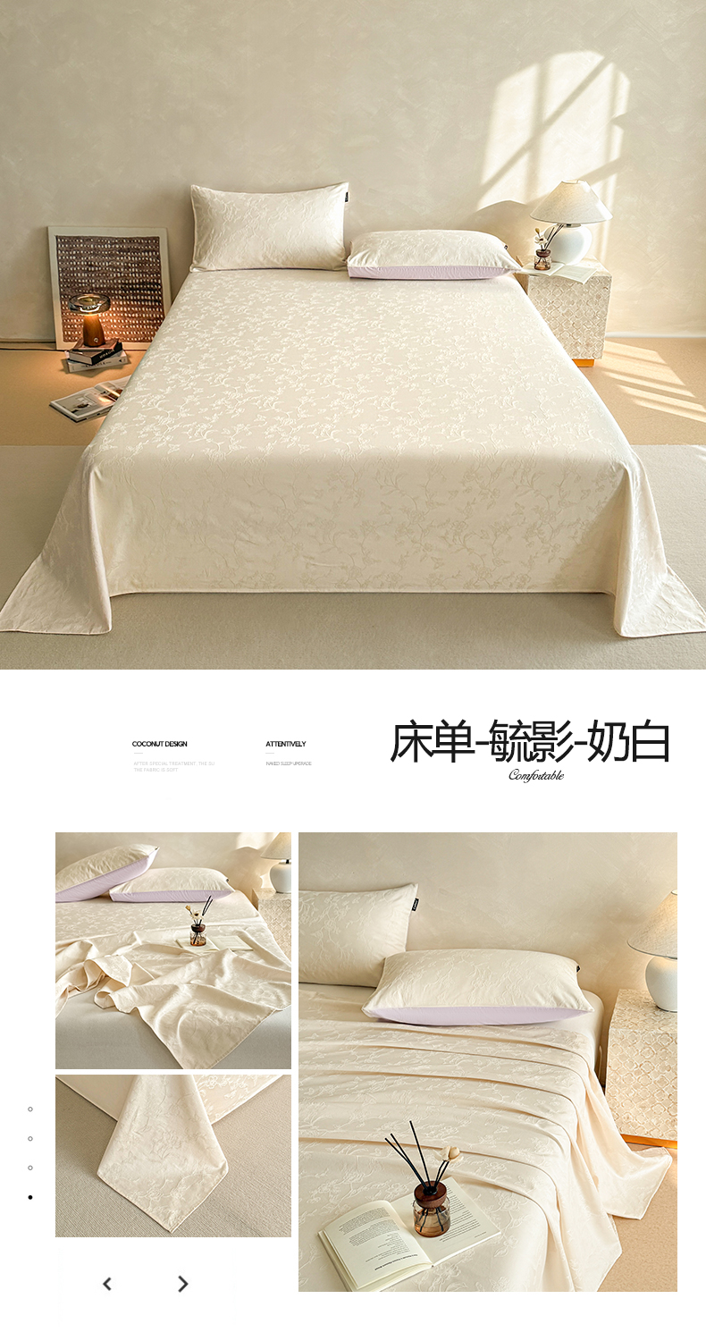 • 91家纺网 家纺一手货源 找家纺 涵宸家纺 2026新款全棉提花里拉系列单床单 床单-毓影-奶白