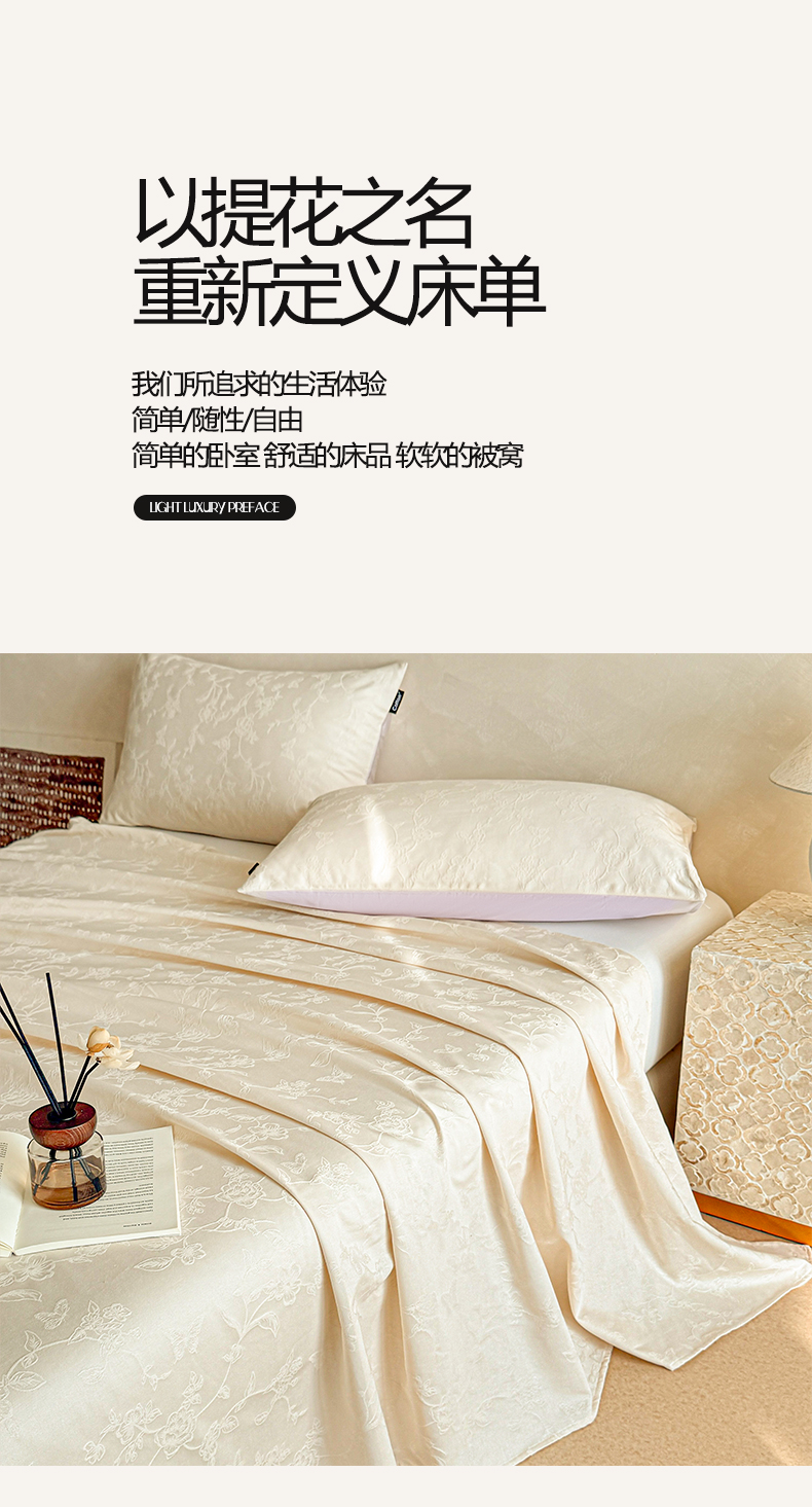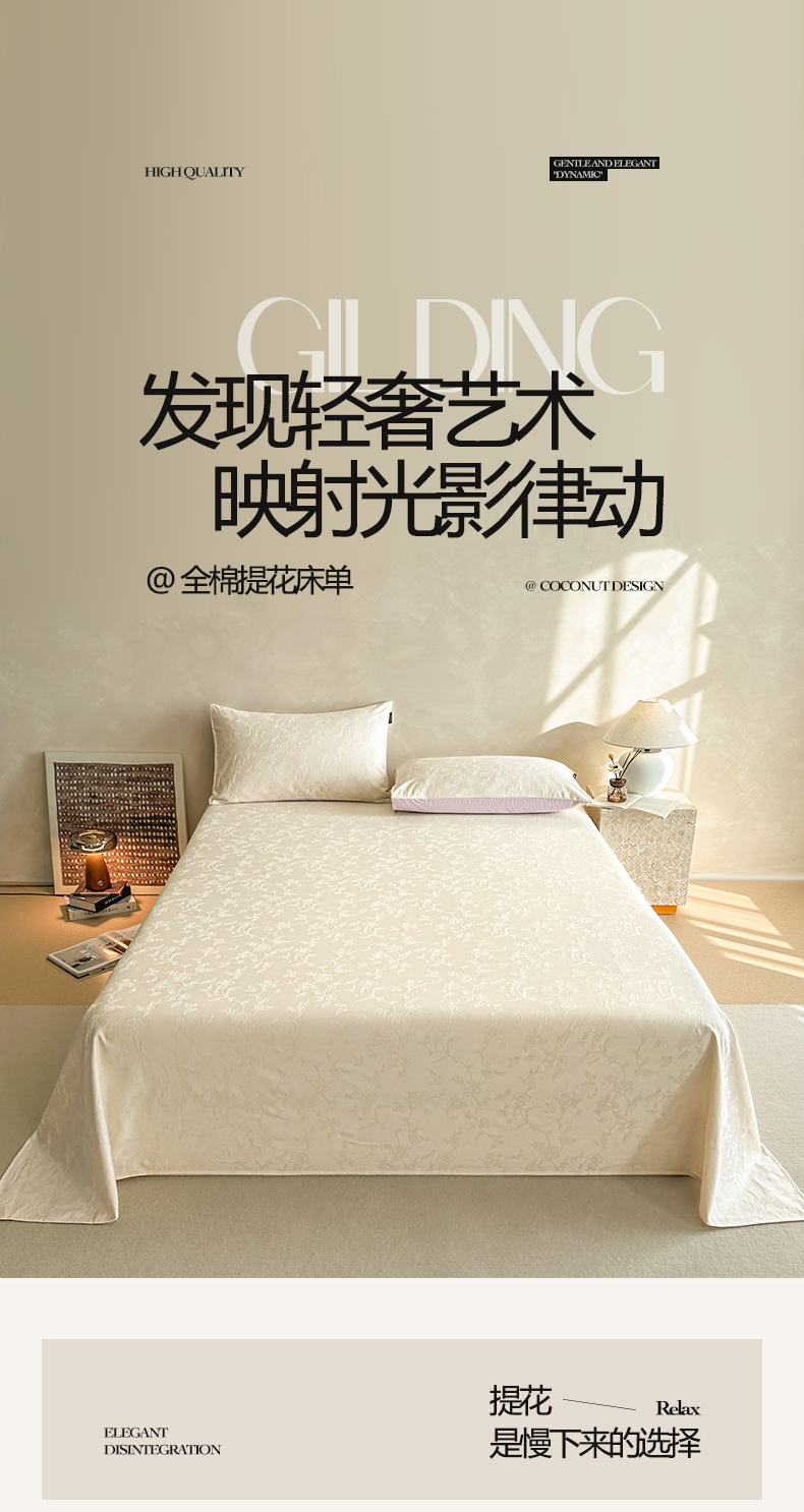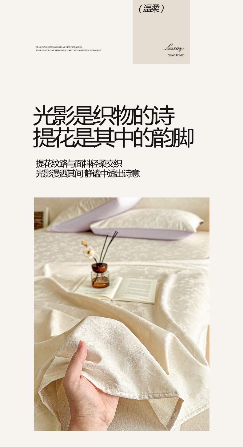 • 91家纺网 家纺一手货源 找家纺 涵宸家纺 2026新款全棉提花里拉系列单床单 床单-毓影-奶白
