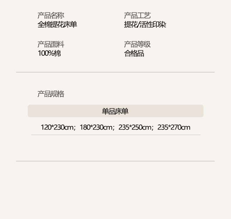 180*230cm单床单