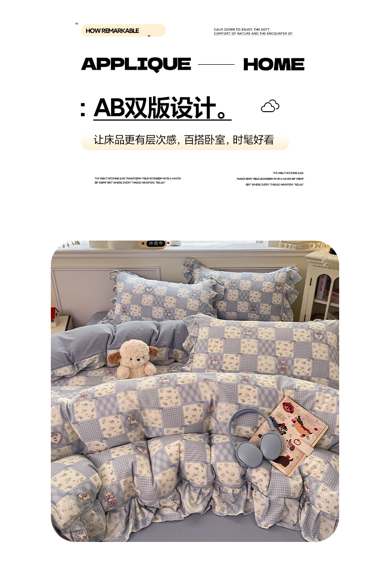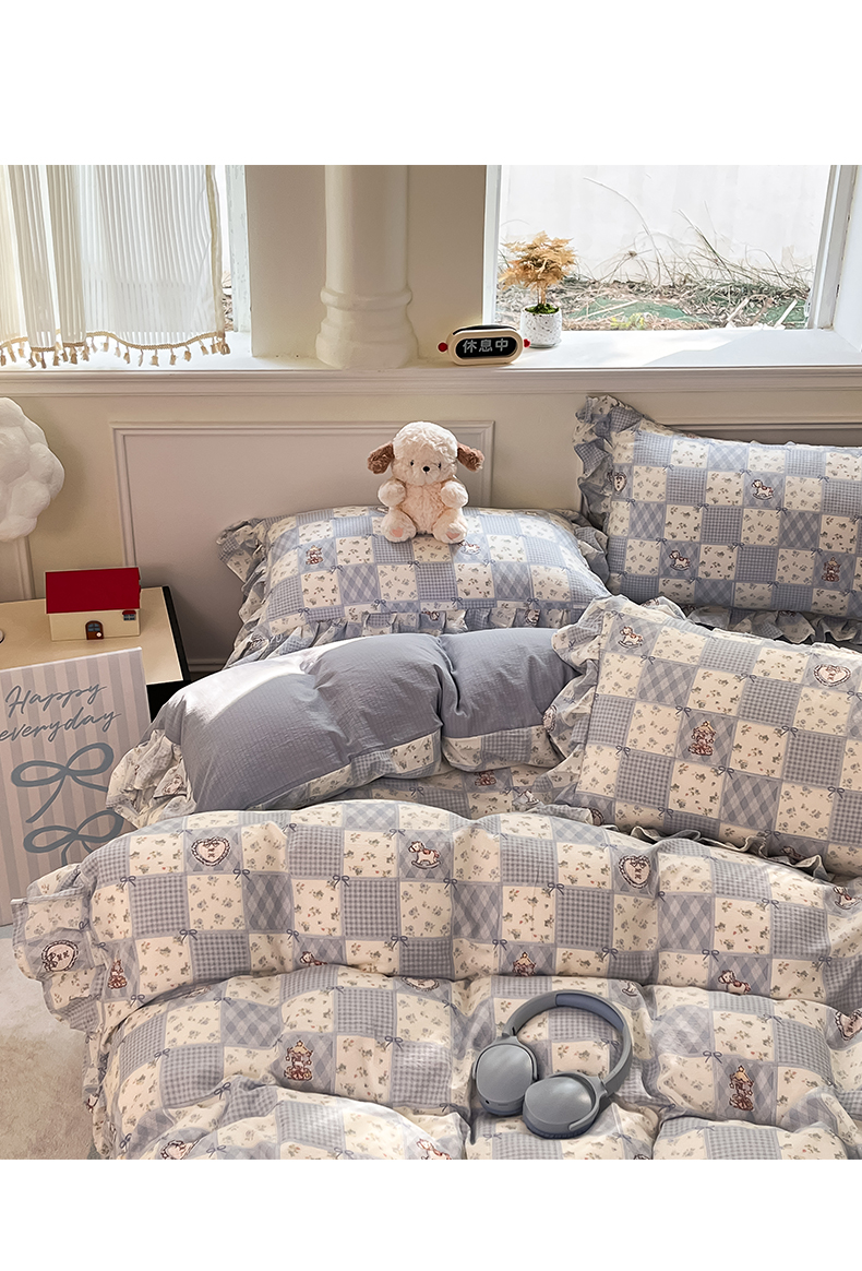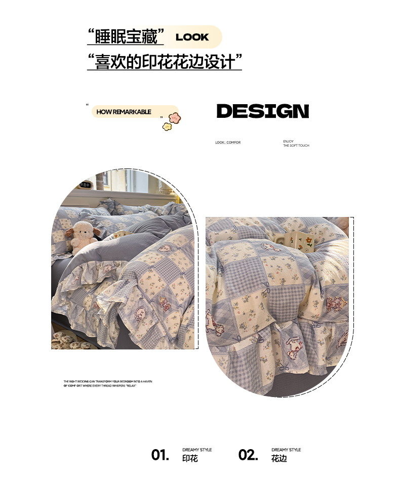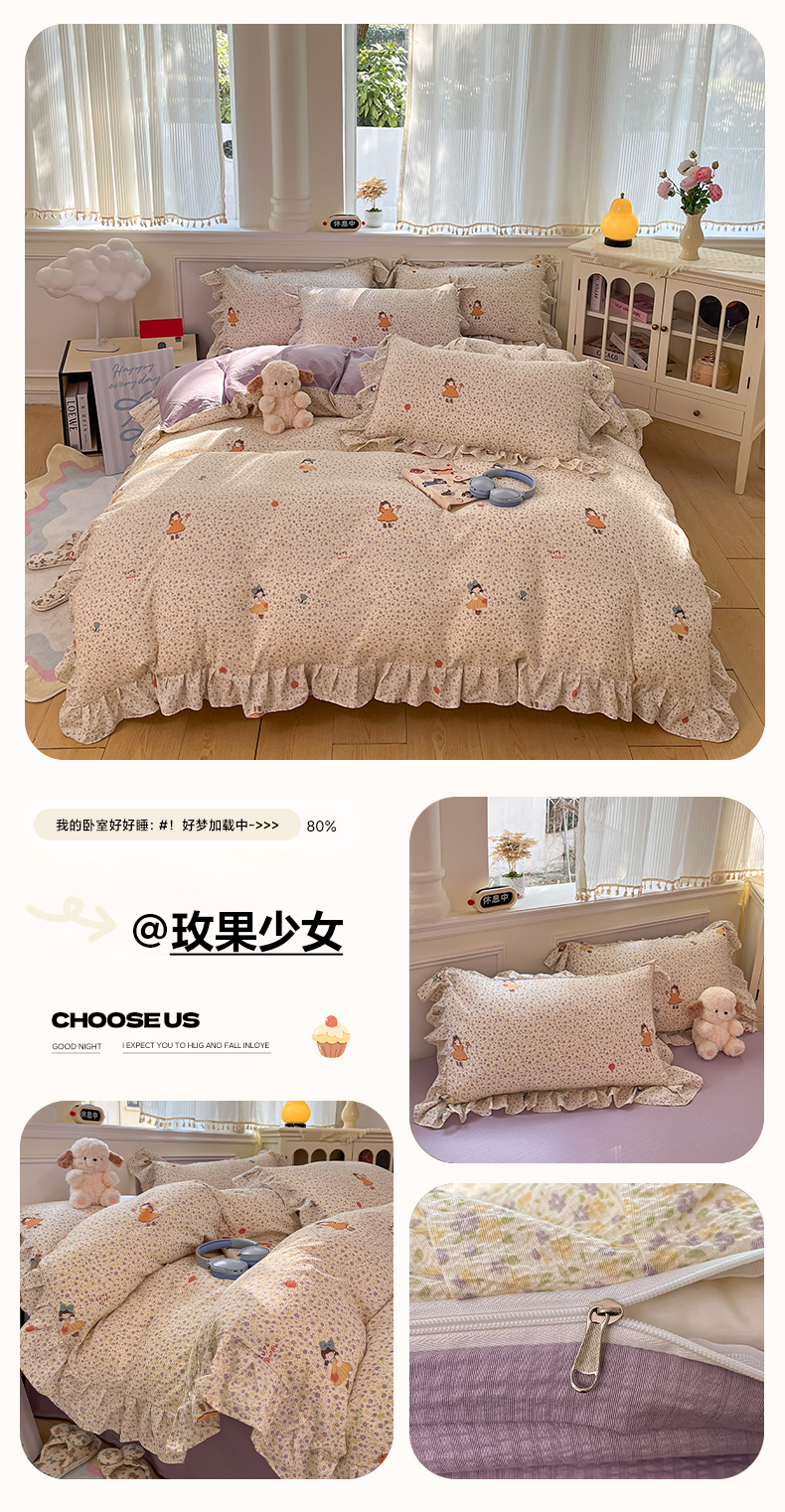 当前位置: 91家纺网 > 商品网购 > 床品套件 > 四件套 > 其它四件套 > 摩妮卡 2026新款泡泡纱韩版印花花边四件套 木马乐园