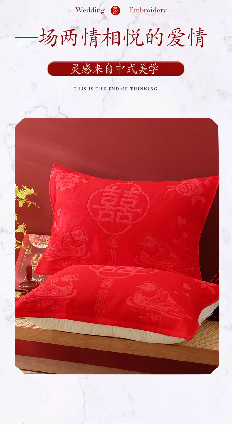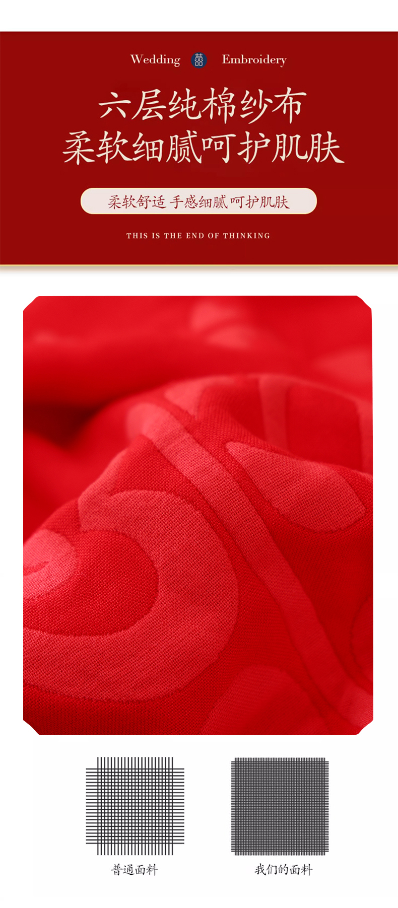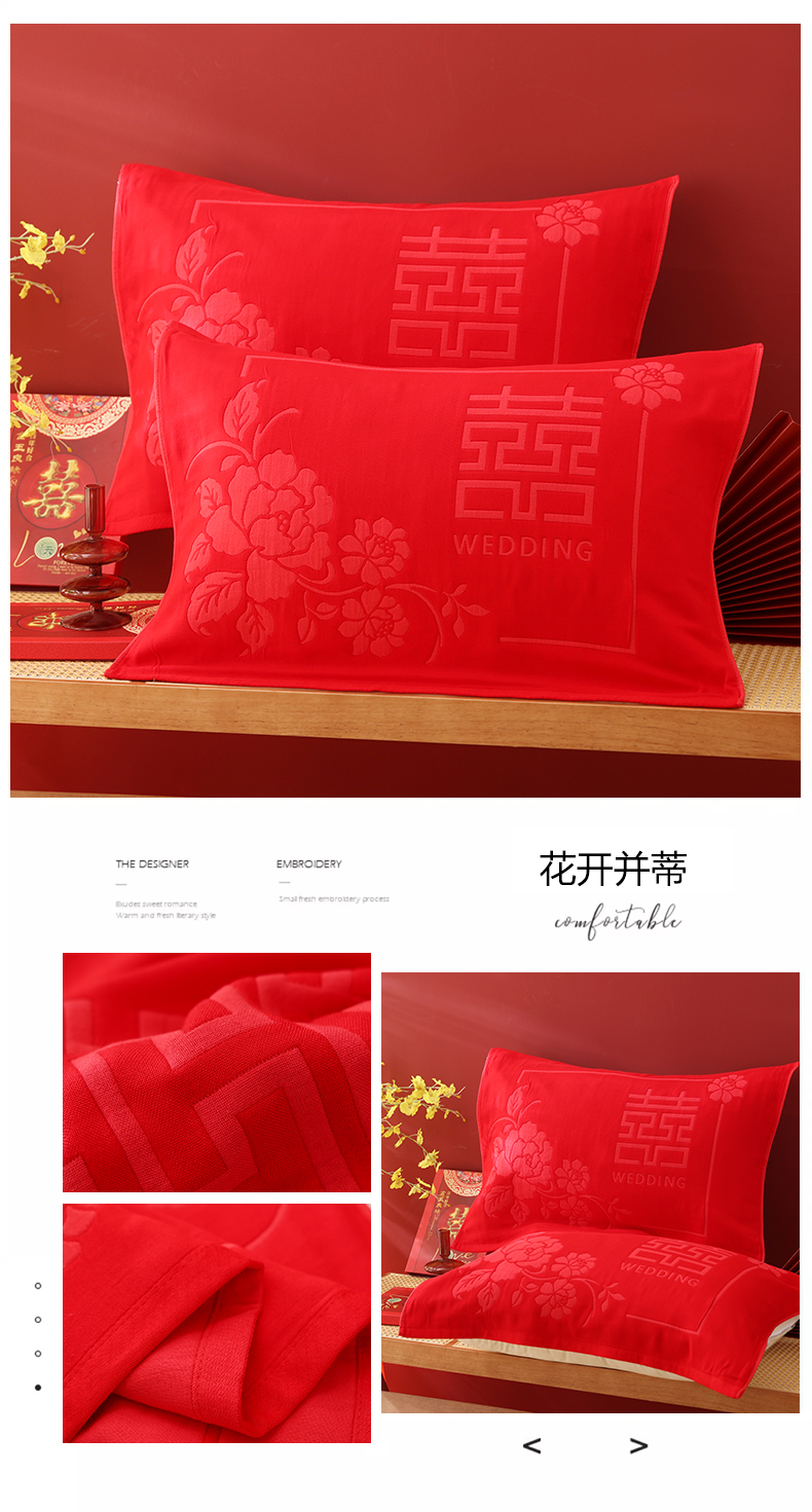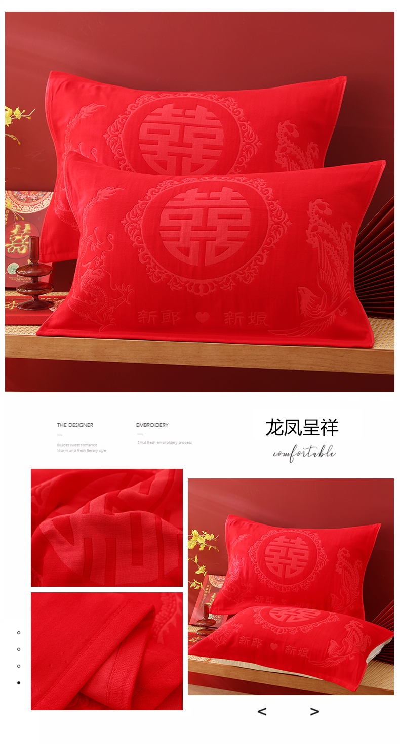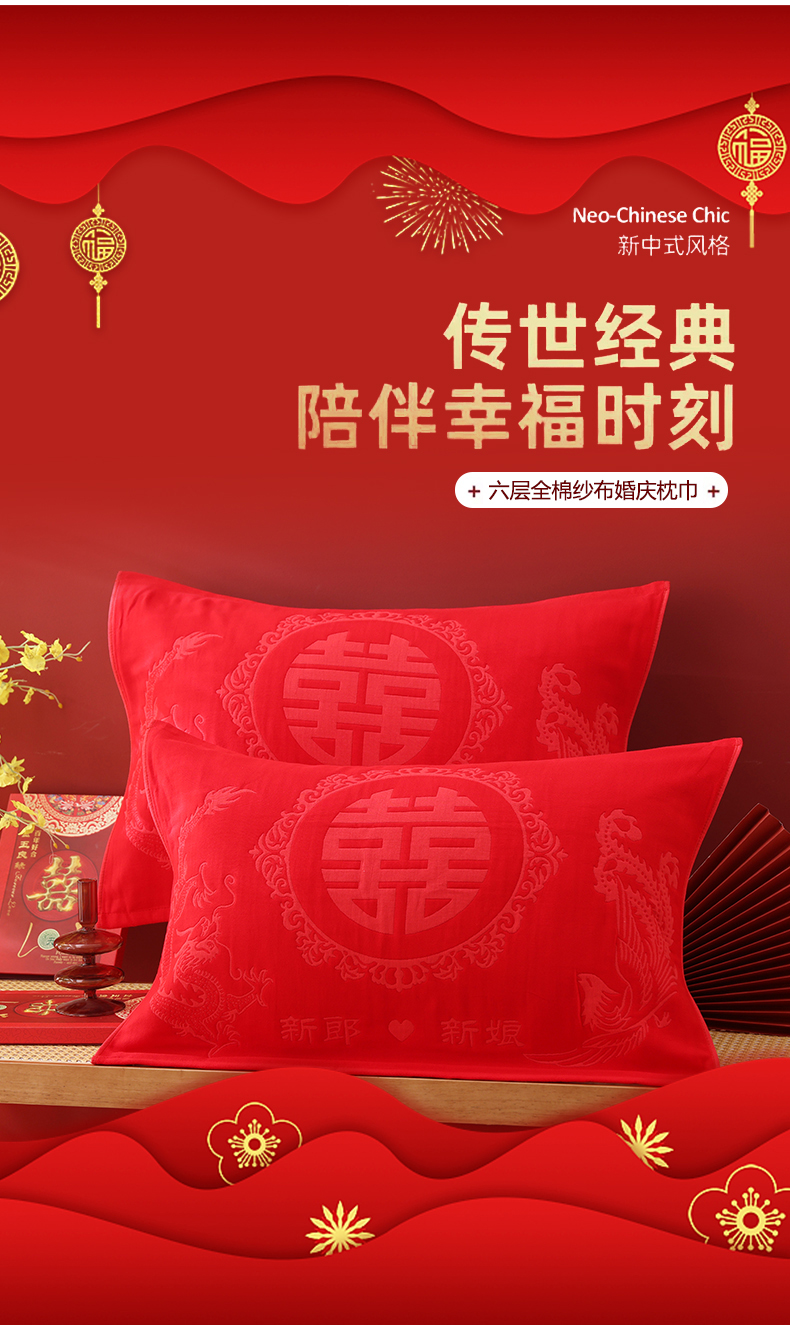 朴尔家纺-毛巾被 2026新款全棉六层纱布大红色婚庆加厚透气枕巾 玫瑰成约