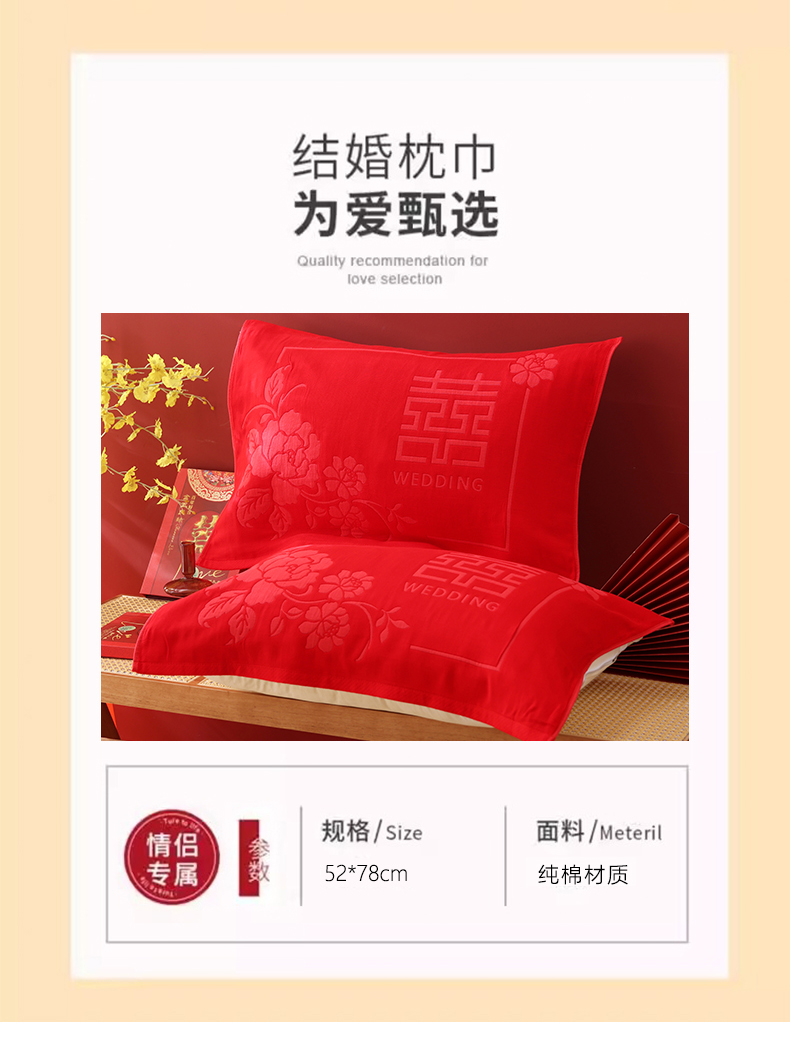 商品名称:朴尔家纺-毛巾被 2026新款全棉六层纱布大红色婚庆加厚透气枕巾 玫瑰成约