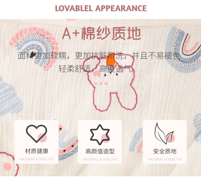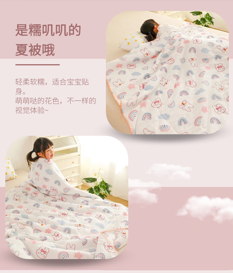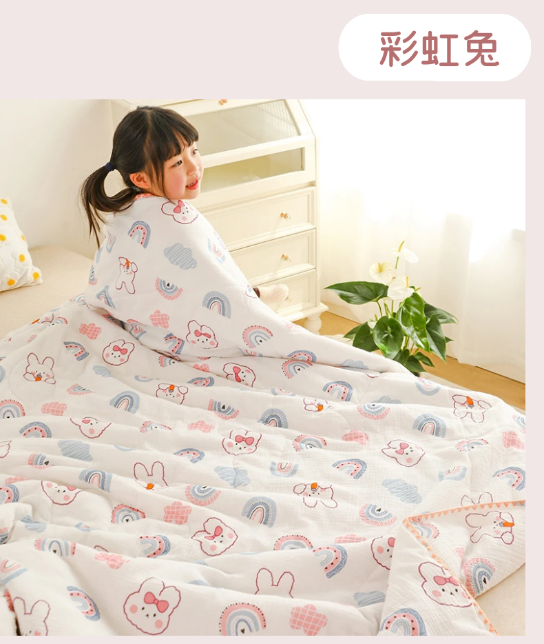 商品名称:十九色 2026新款婴儿纱皱布儿童贴身夏被被子被芯 彩虹兔