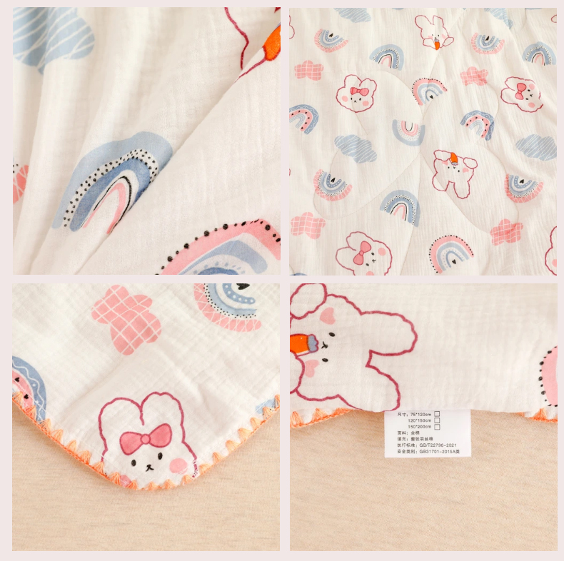 十九色 2026新款婴儿纱皱布儿童贴身夏被被子被芯 彩虹兔