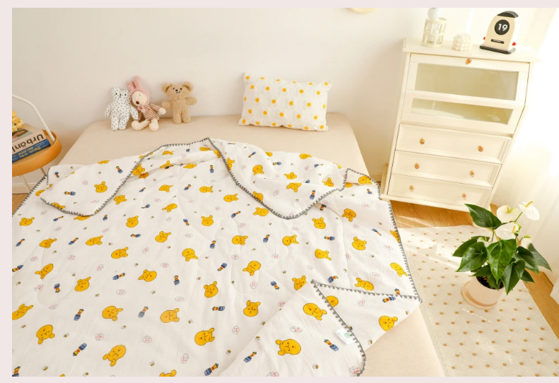 (总)十九色 2024新款华夫格纱全棉儿童夏凉被双层纱空调被,兔公主粉,相识,小马粉,小树林,小熊蓝,遇见,长颈鹿,草莓派,聪明鸭
