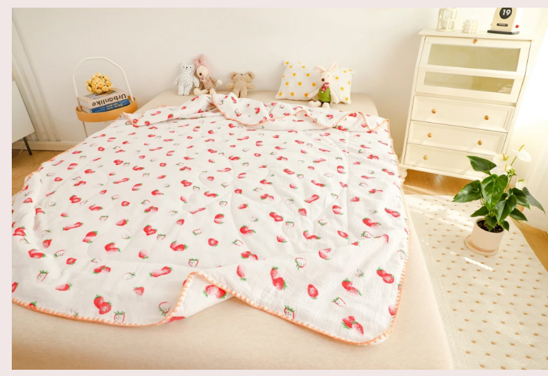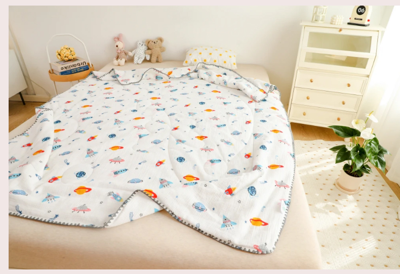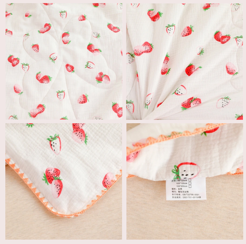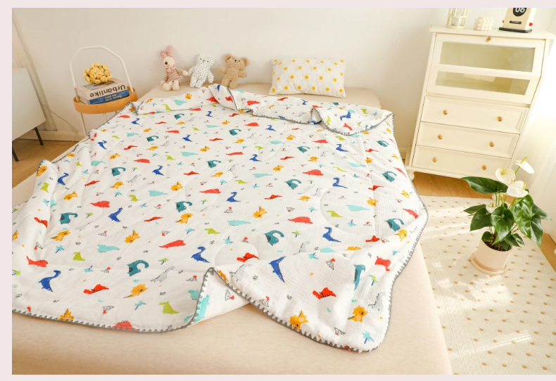 (总)十九色 2026新款婴儿纱皱布儿童贴身夏被被子被芯,彩虹兔,吃西瓜,呆萌熊,滑翔机,快乐星球,甜心草莓,五彩恐龙,小鲸鱼