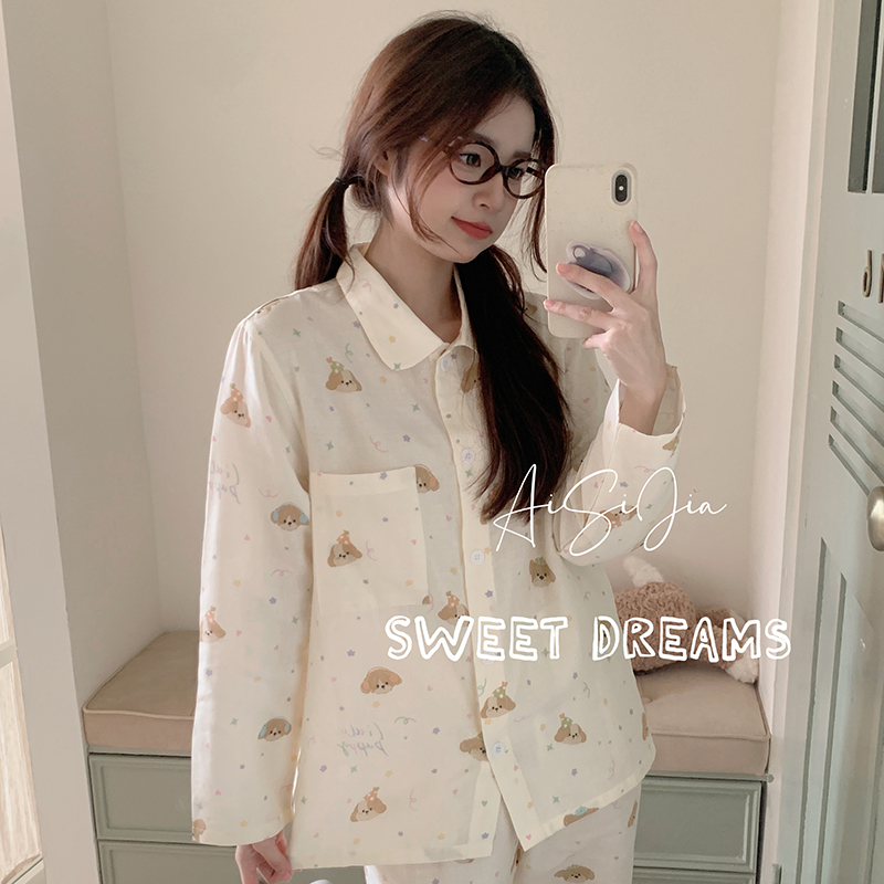(总)爱思佳 2026新款全棉双层纱长袖长裤睡衣