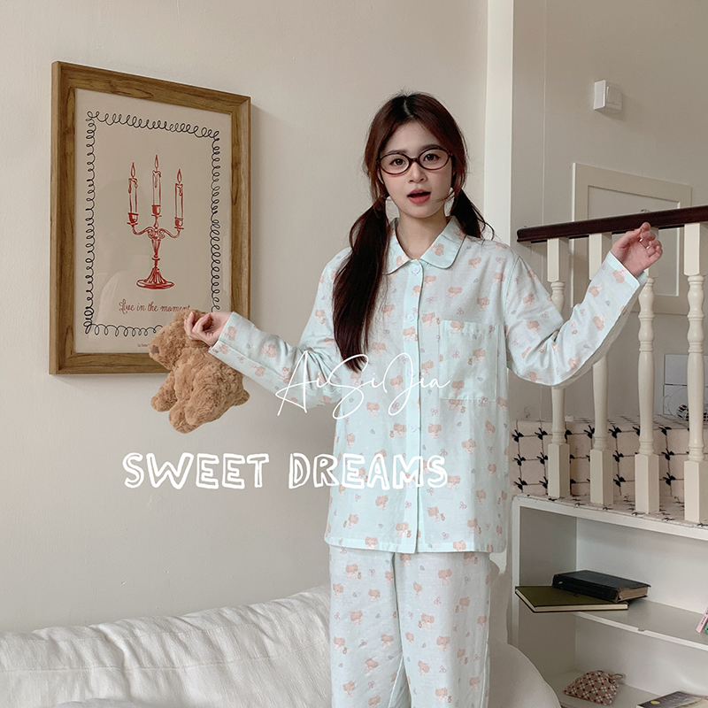 商品名称:(总)爱思佳 2026新款全棉双层纱长袖长裤睡衣