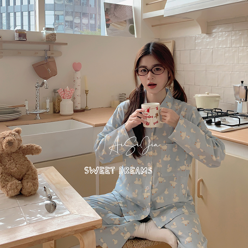 爱思佳 2026新款全棉双层纱长袖长裤睡衣 兔兔情话