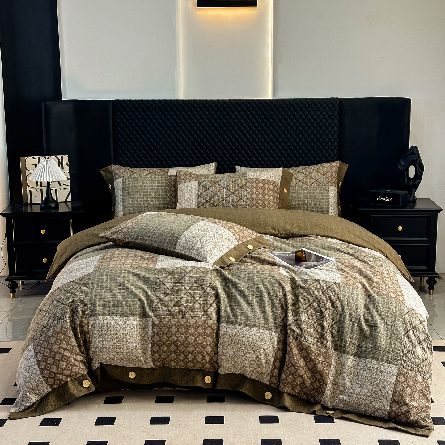 当前位置: 91家纺网 > 商品网购 > 床品套件 > 四件套 > 其它四件套 > 晚爱家纺(原晚安家居) 2026新款加厚双层纱原麻纽扣款四件套 花影棕