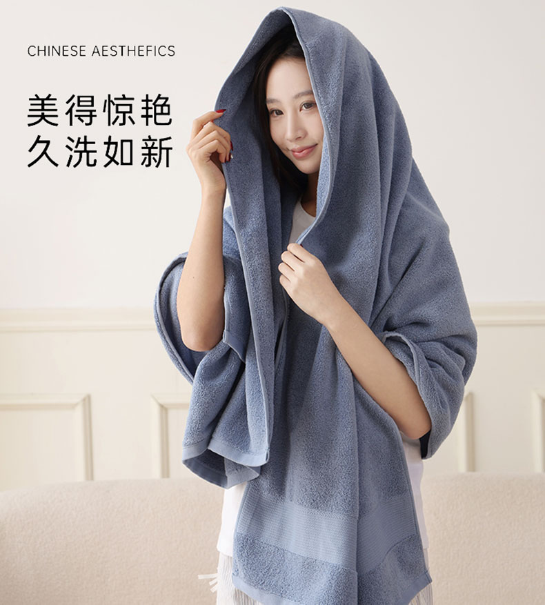 当前位置: 91家纺网 > 商品网购 > 居家日用 > 毛巾/浴巾/浴袍 > 浴巾 > 朴尔家纺-毛巾被 2026新款纯色全棉缎档加大加厚浴巾-晨雾 组合图(仅供展示不可下单) 90x180cm/条
