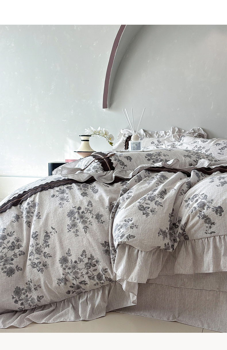 迷尚家居 2026新款提花色织麻花边四件套 素锦灰