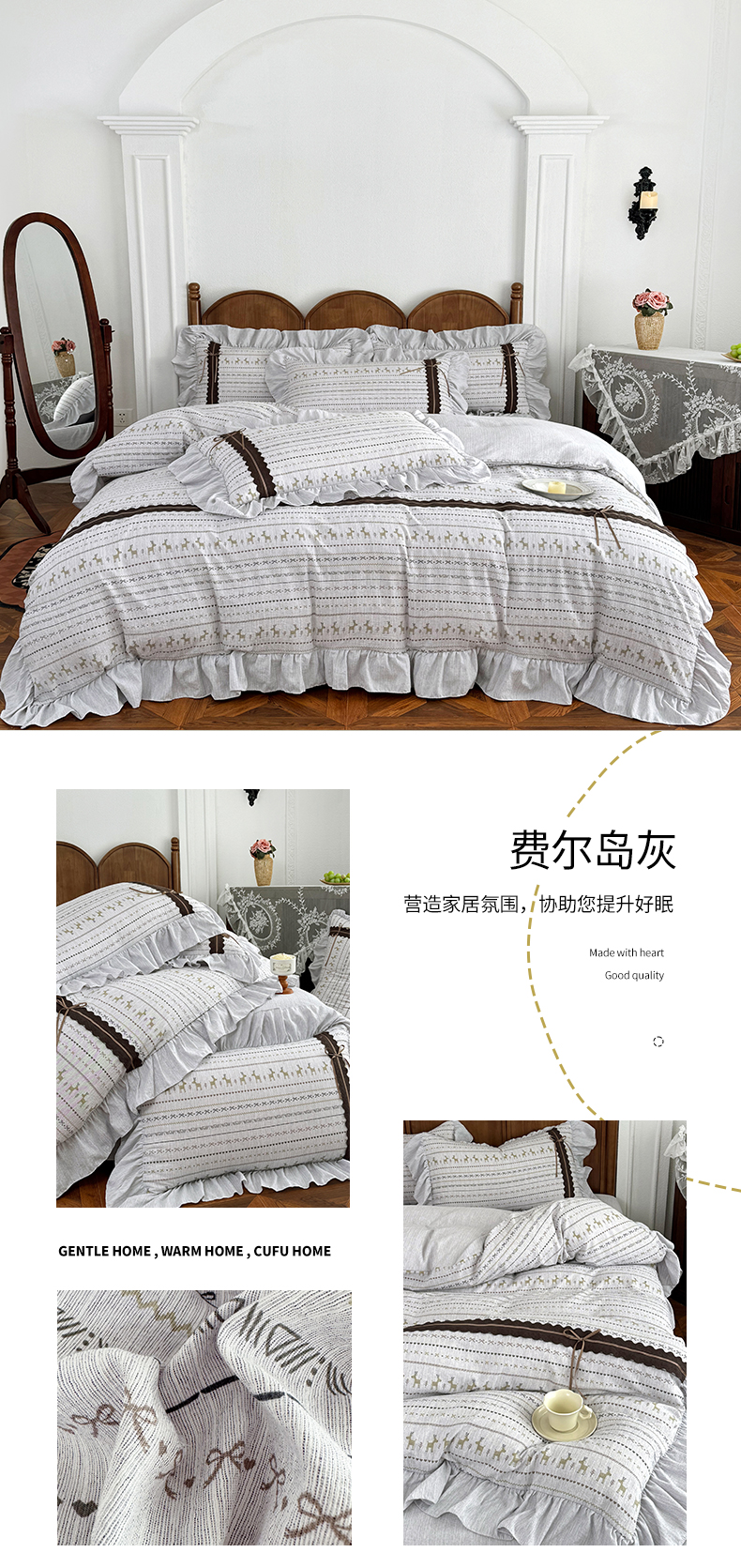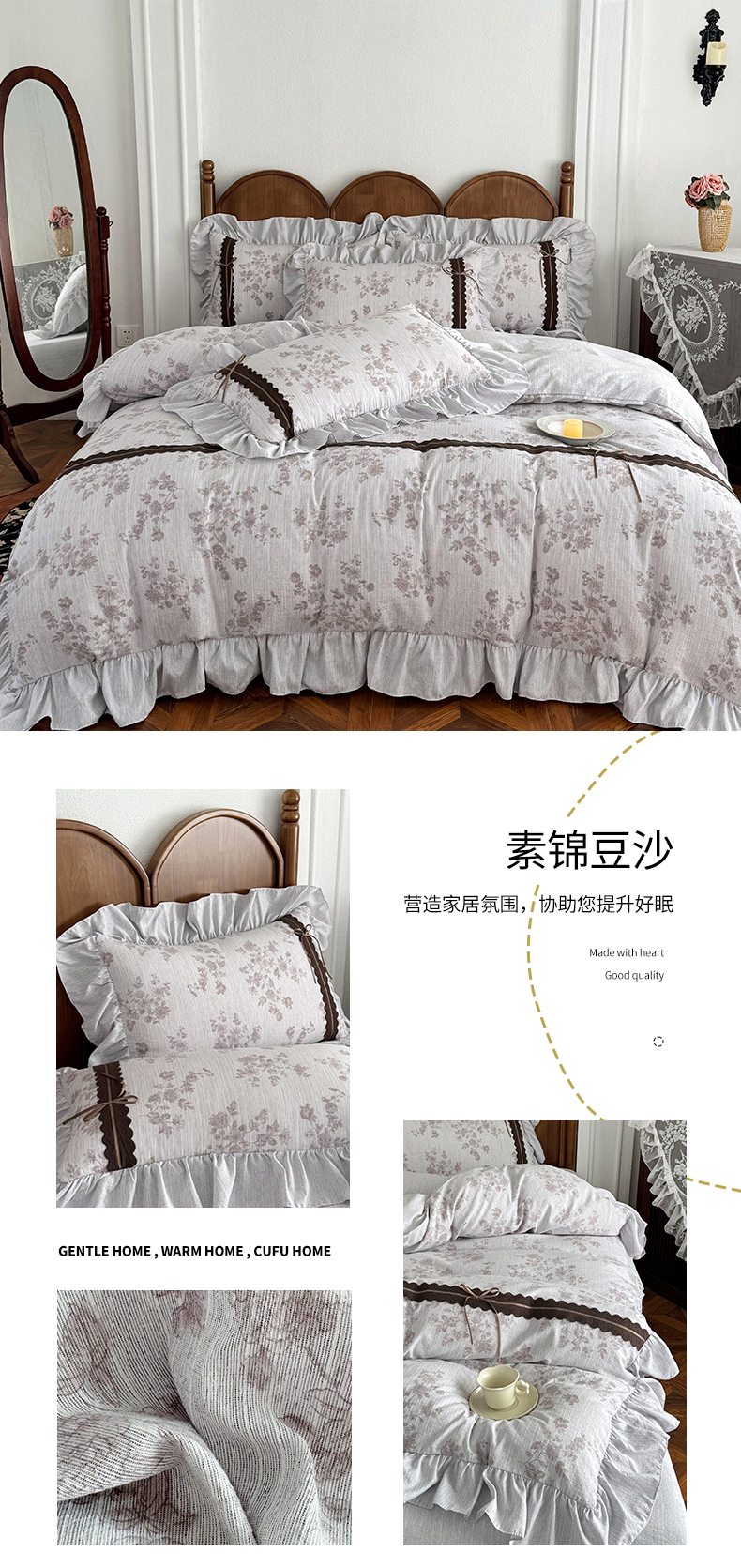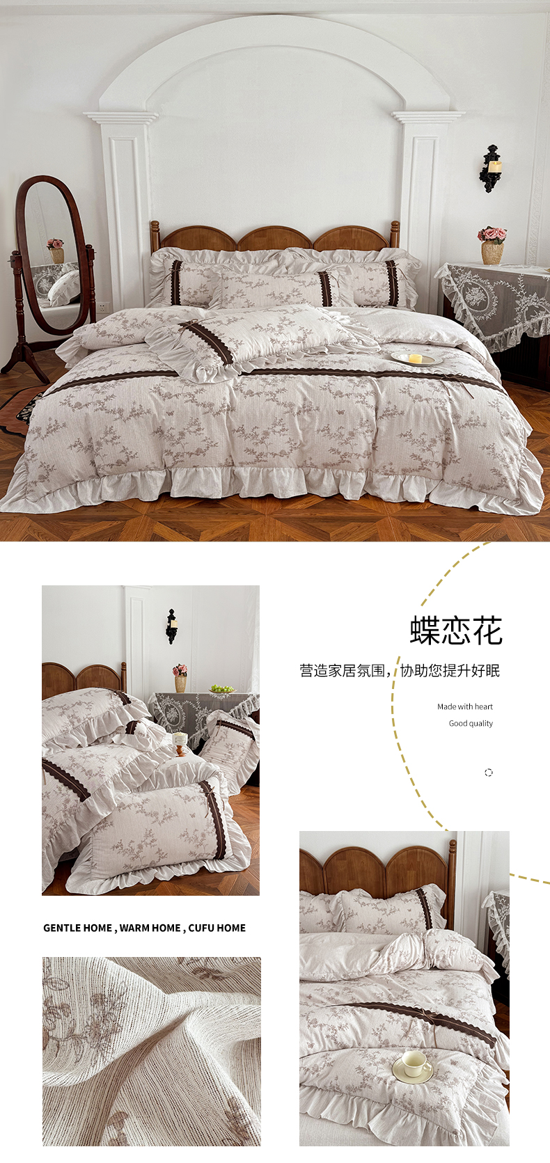 (总)迷尚家居 2025新款复古色织仿棉麻全棉花边四件套,迪奥咖-棉麻,风木槿咖-棉麻,枫林晚-棉麻,古奈绿-棉麻,锦瑟-棉麻,俏颜-棉麻,秋恋红-棉麻,颂青时-棉麻,砚秋紫-棉麻,玉环-棉麻,玉茗-棉麻