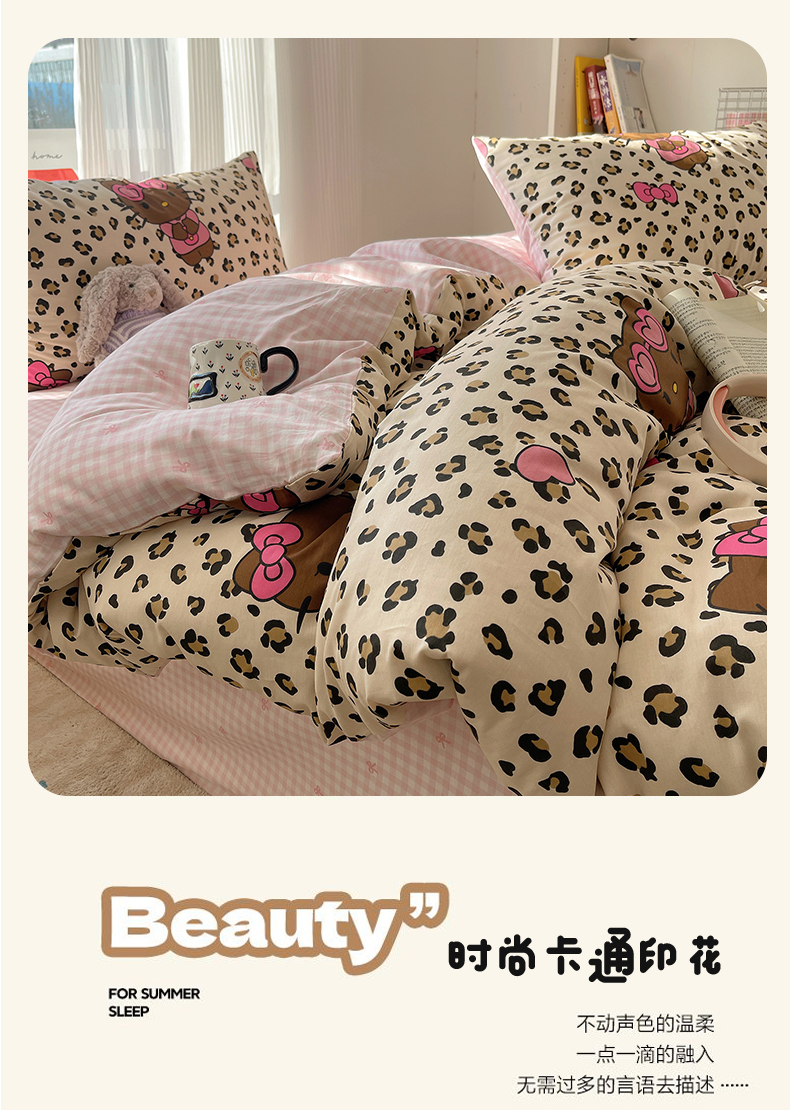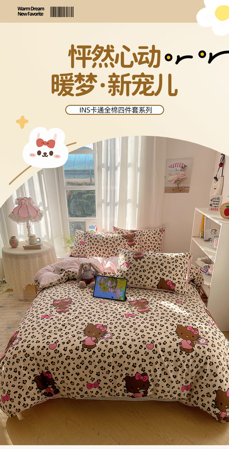 六巷胡同 2026新款INS减龄可爱风卡通全棉四件套(第二系列) 豹纹黑皮猫